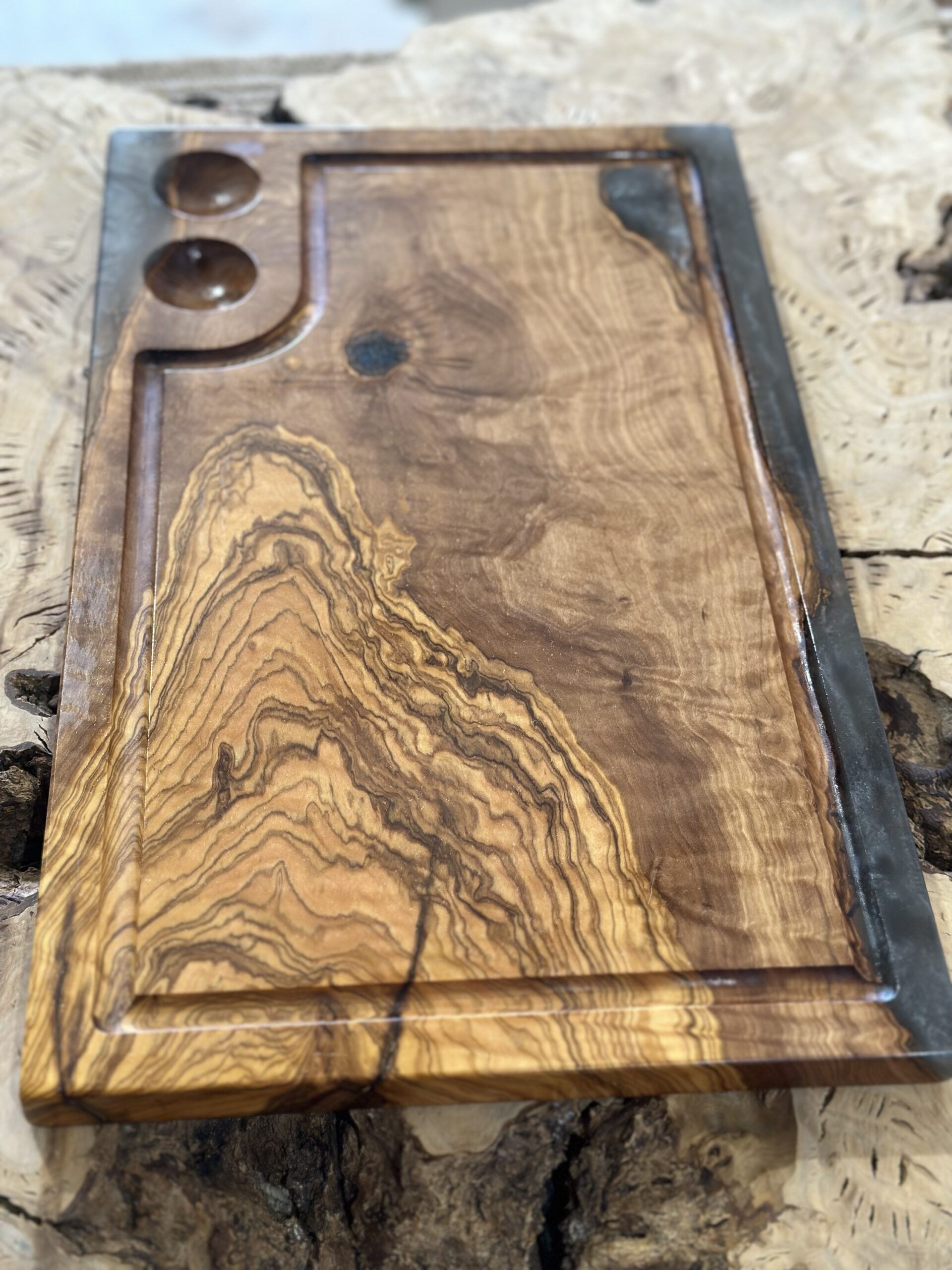בוצ'ר עץ זית עם אפוקסי 44*54ס"מ