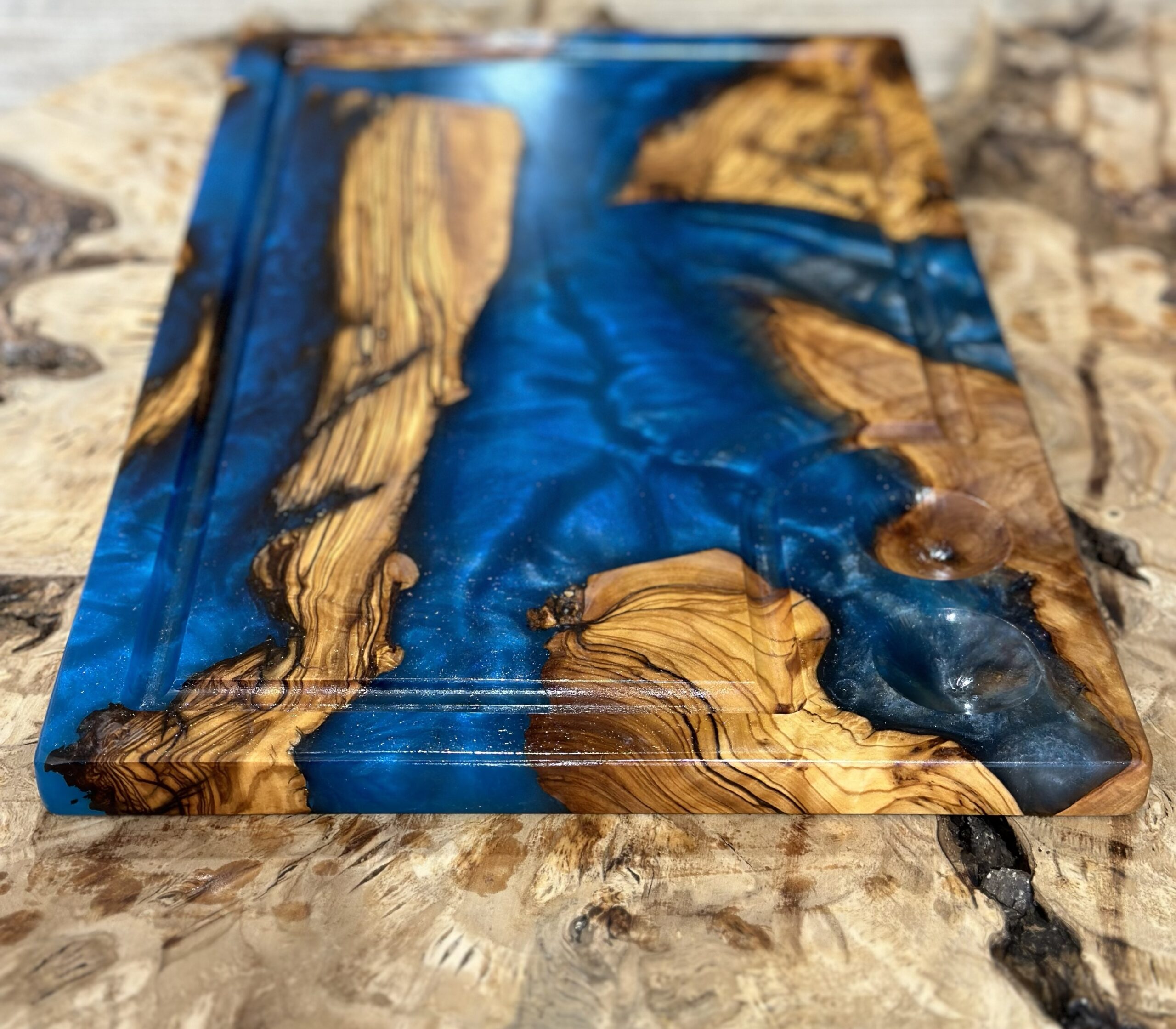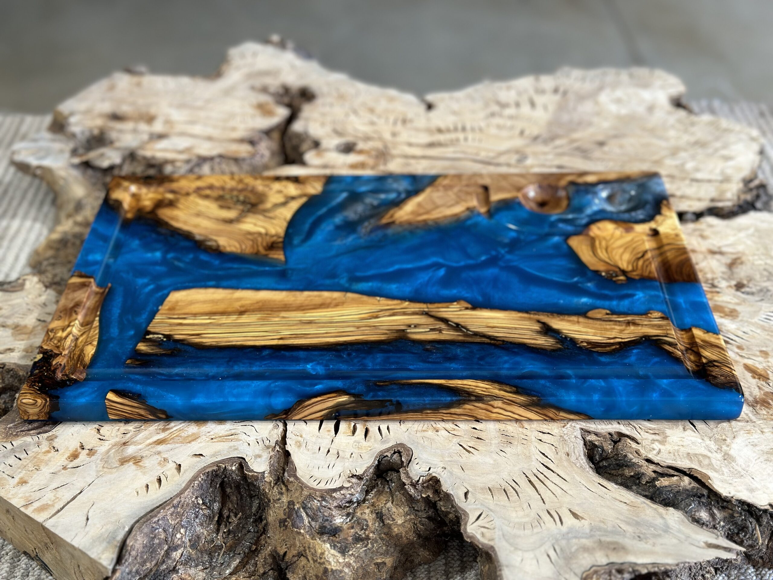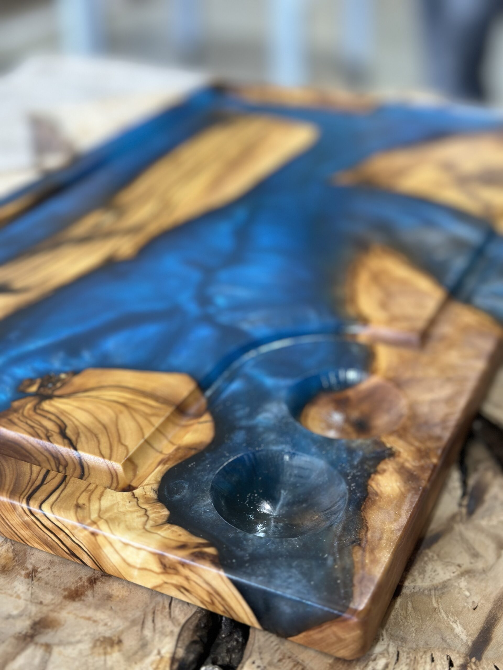 בוצ'ר עץ זית עם אפוקסי 43*50ס"מ