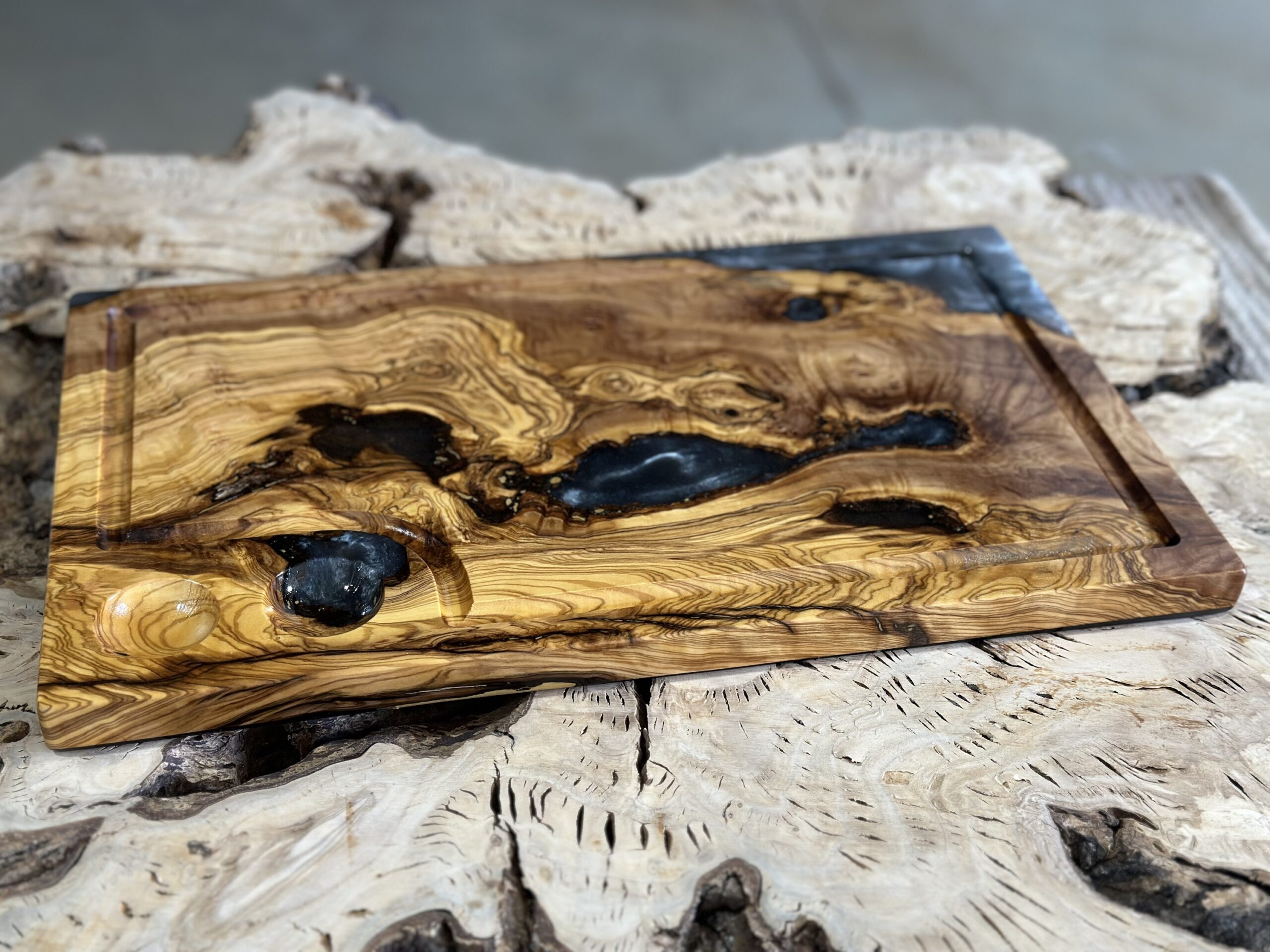 בוצ'ר עץ זית עם אפוקסי