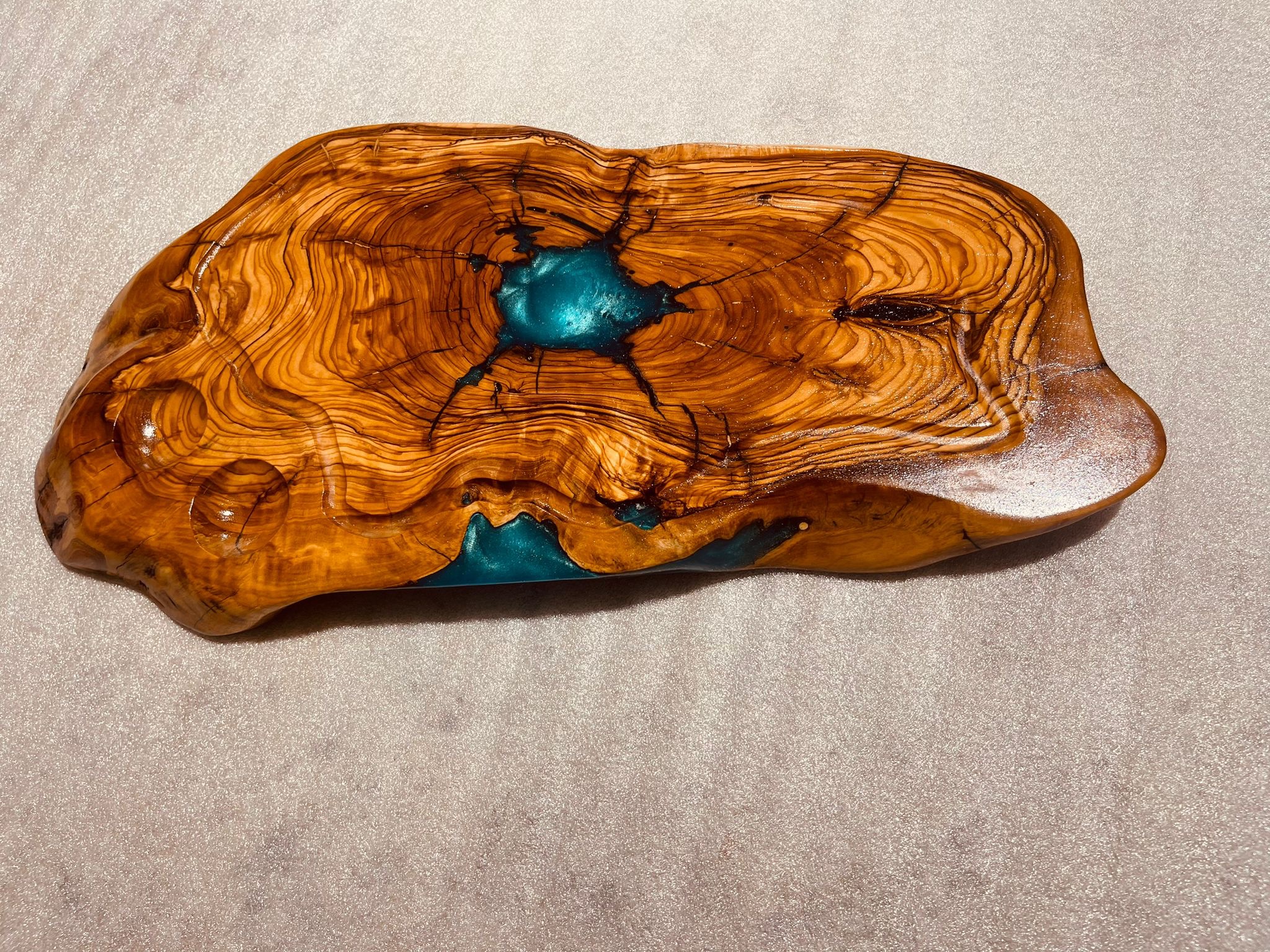 בוצ'ר עץ זית עם אפוקסי 43*50ס"מ