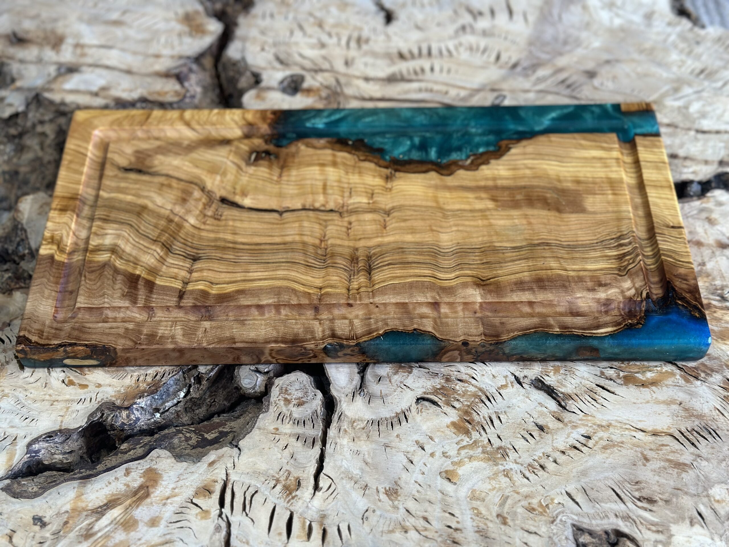 בוצ'ר עץ זית עם אפוקסי 39*47ס"מ