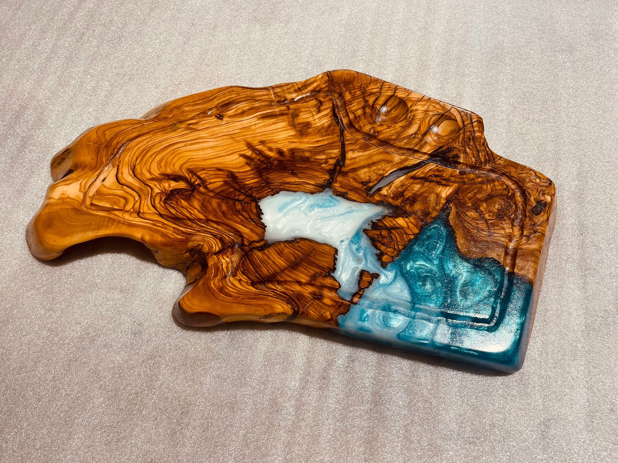 בוצ'ר עץ זית עם אפוקסי 44*54ס"מ