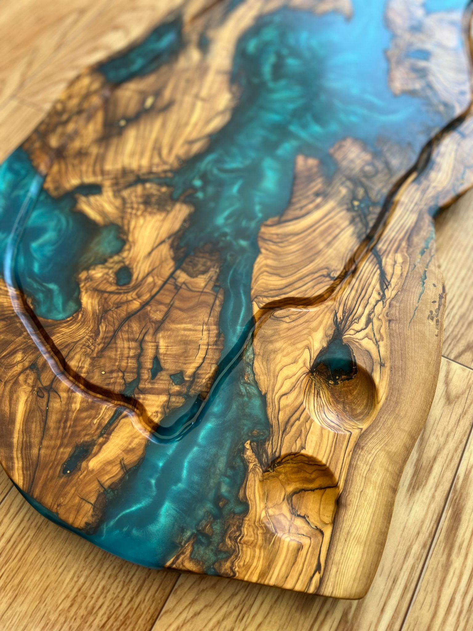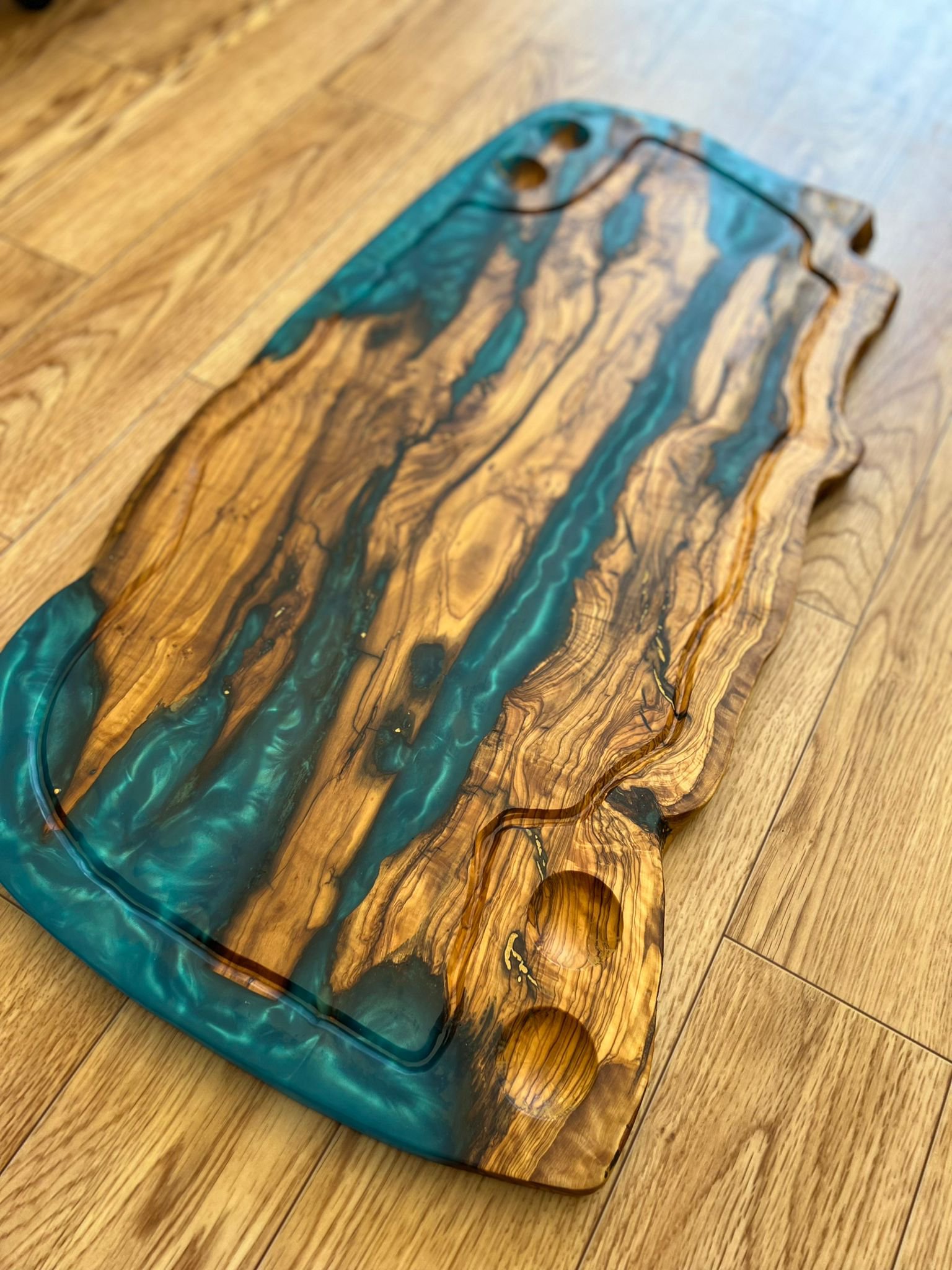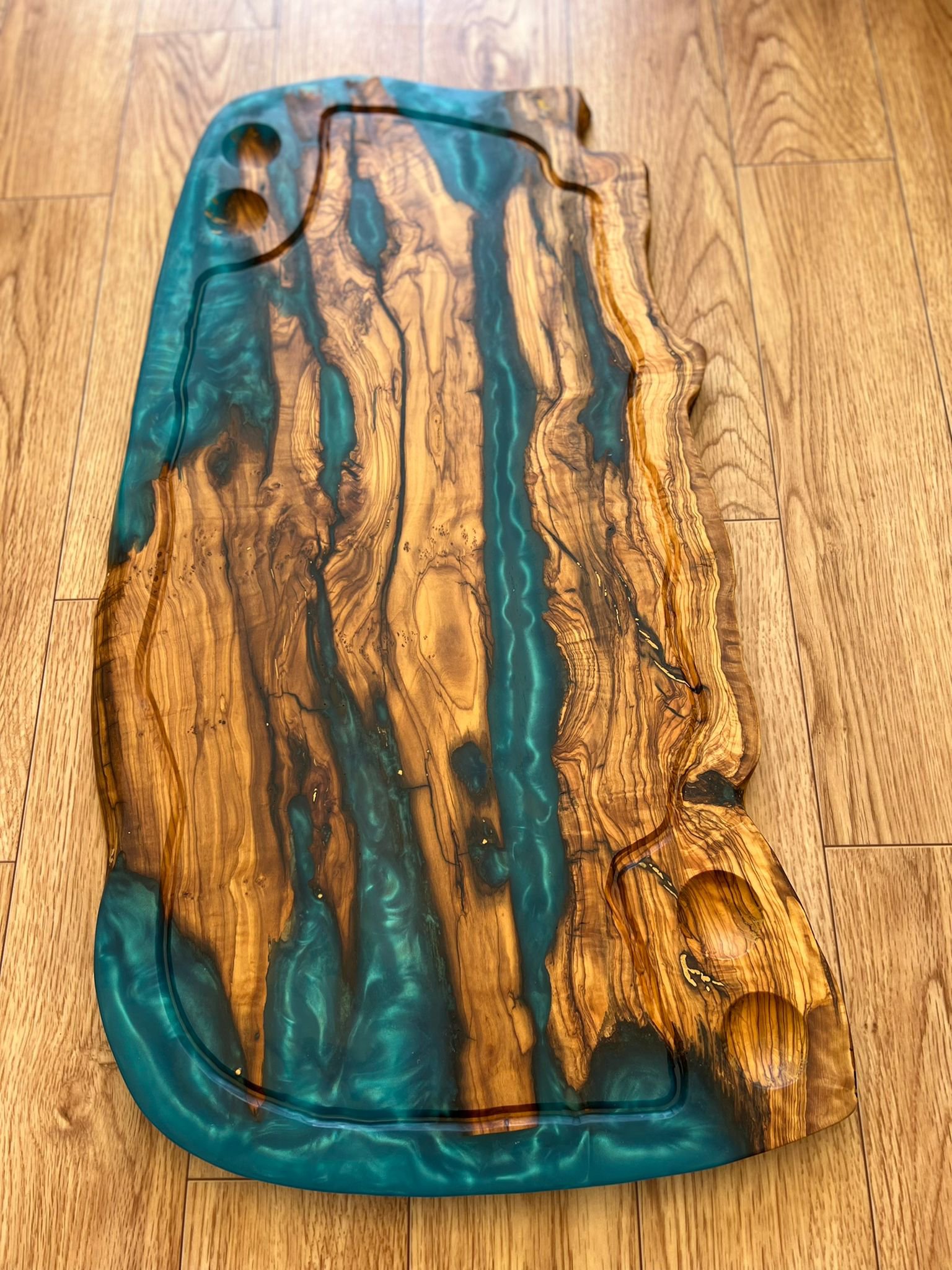 בוצ'ר עץ זית עם אפוקסי 44*54ס"מ