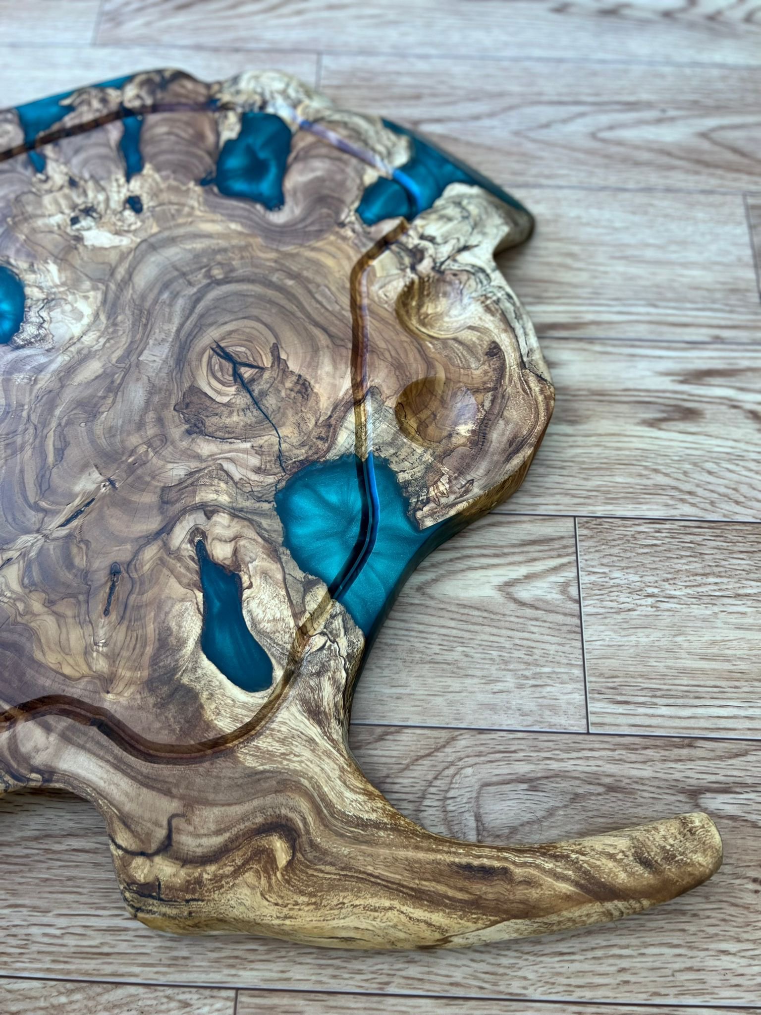 בוצ'ר עץ זית עם אפוקסי 43*50ס"מ