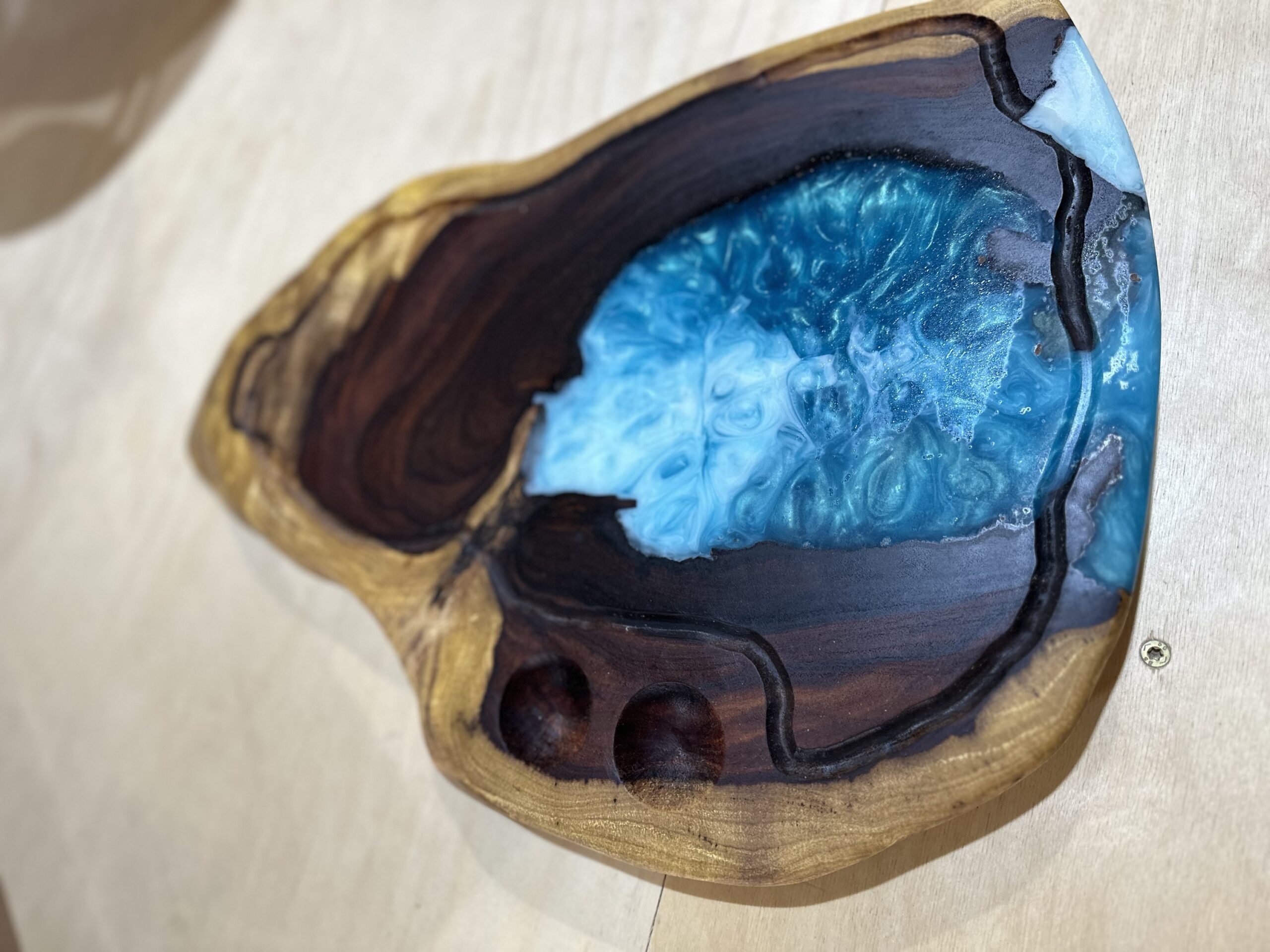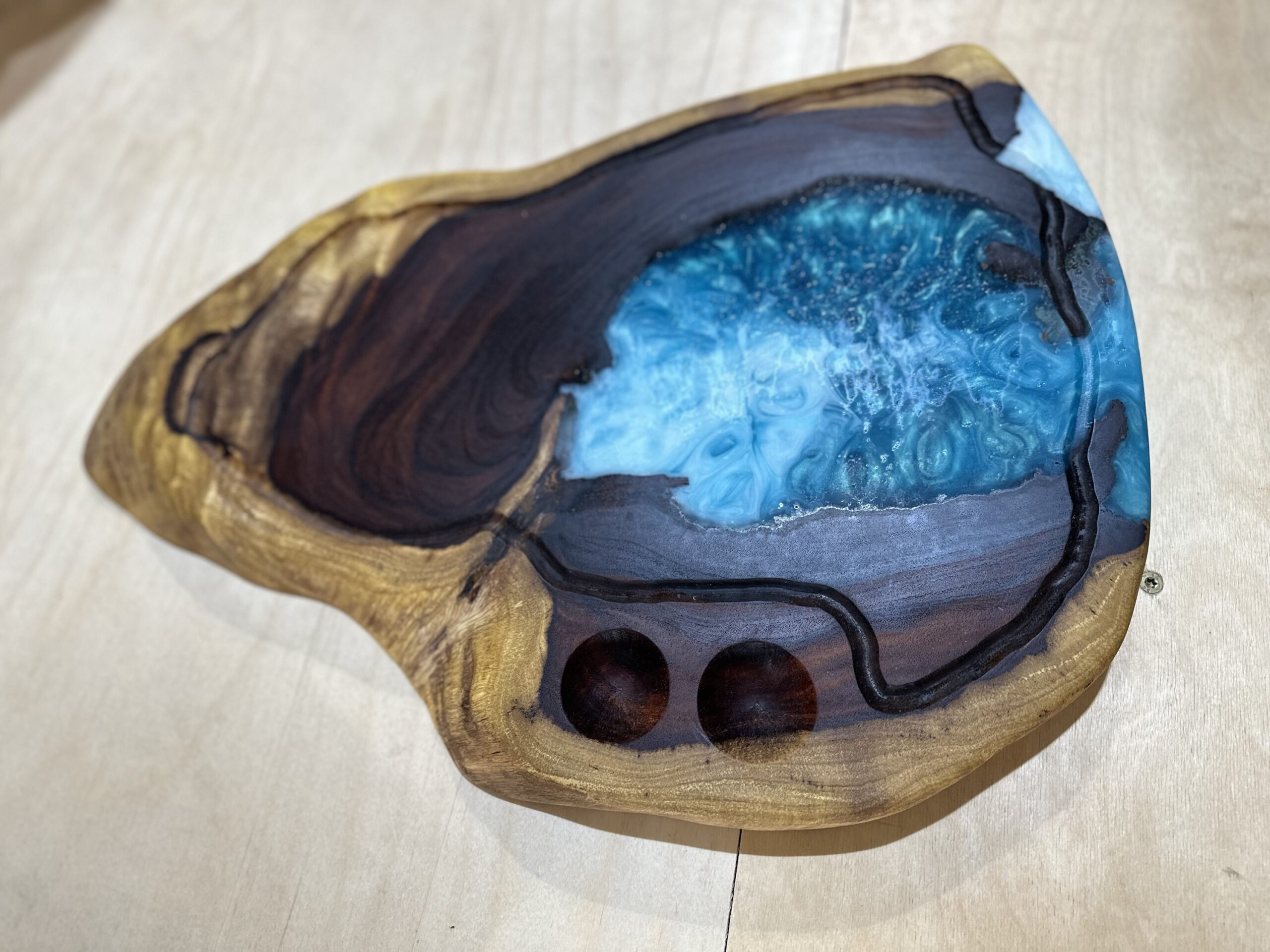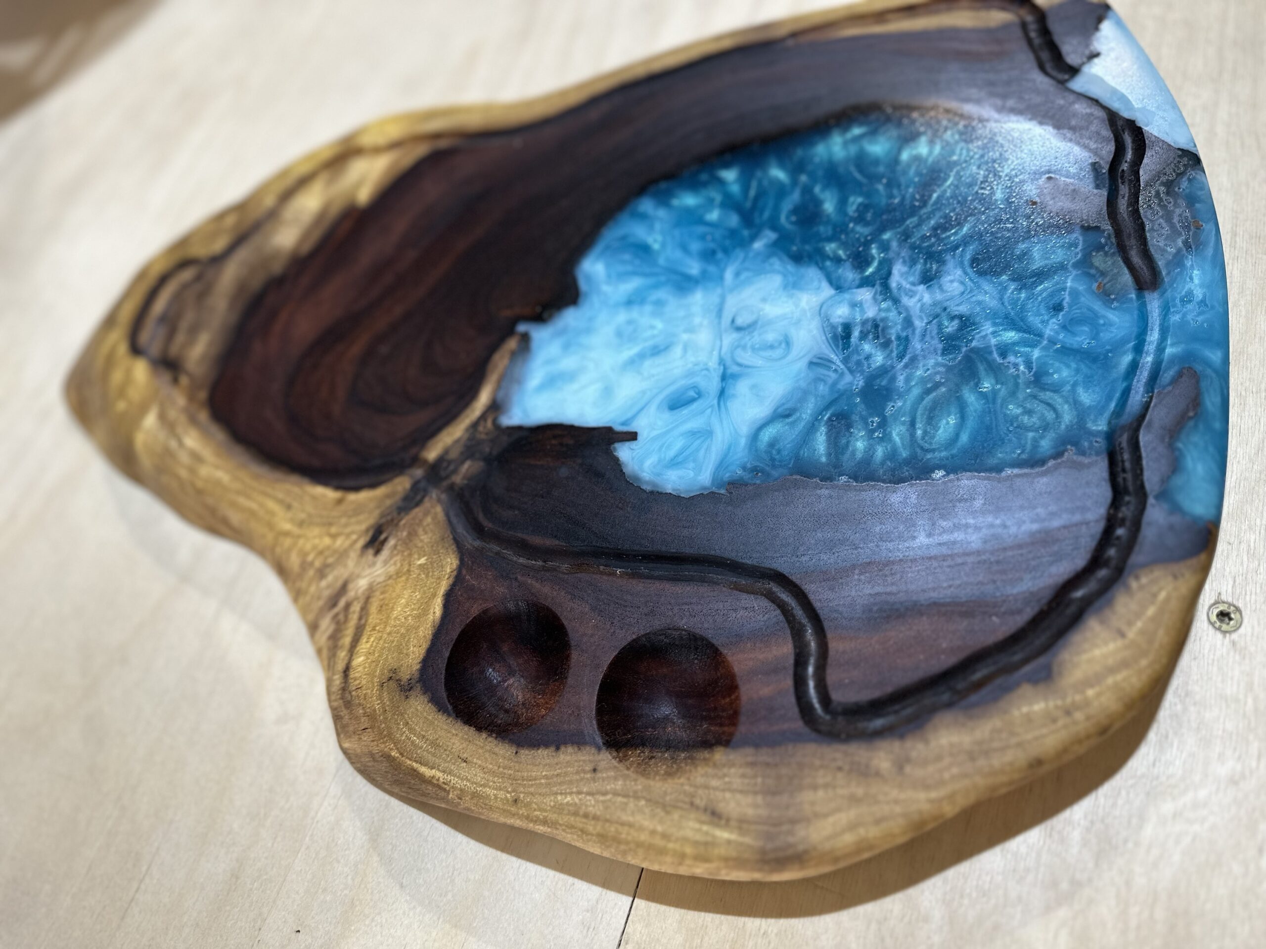 בוצ'ר עץ סיסם עם אפוקסי 25*55 ס"מ