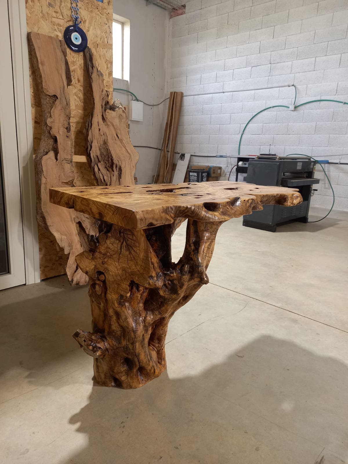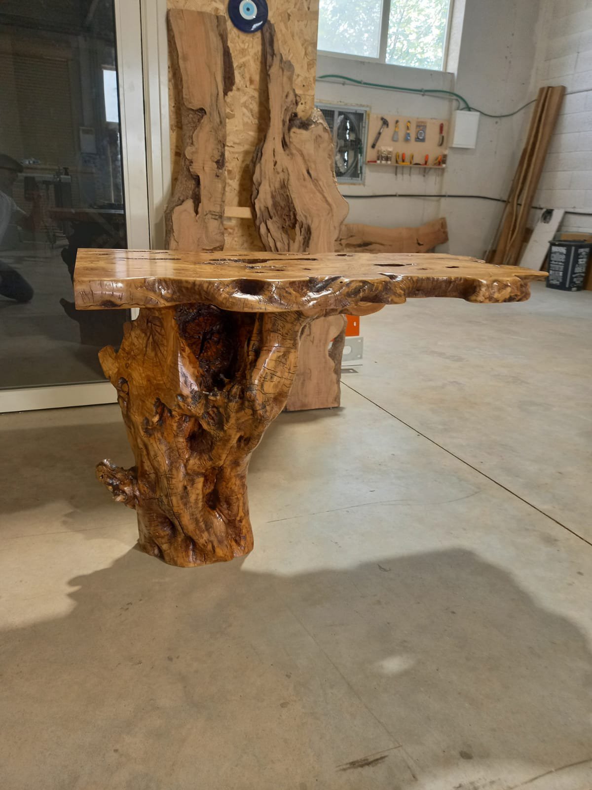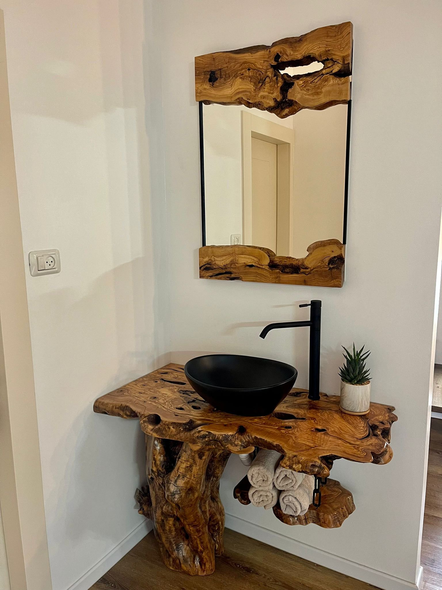 גזע עץ טבעי לכיור ומראה