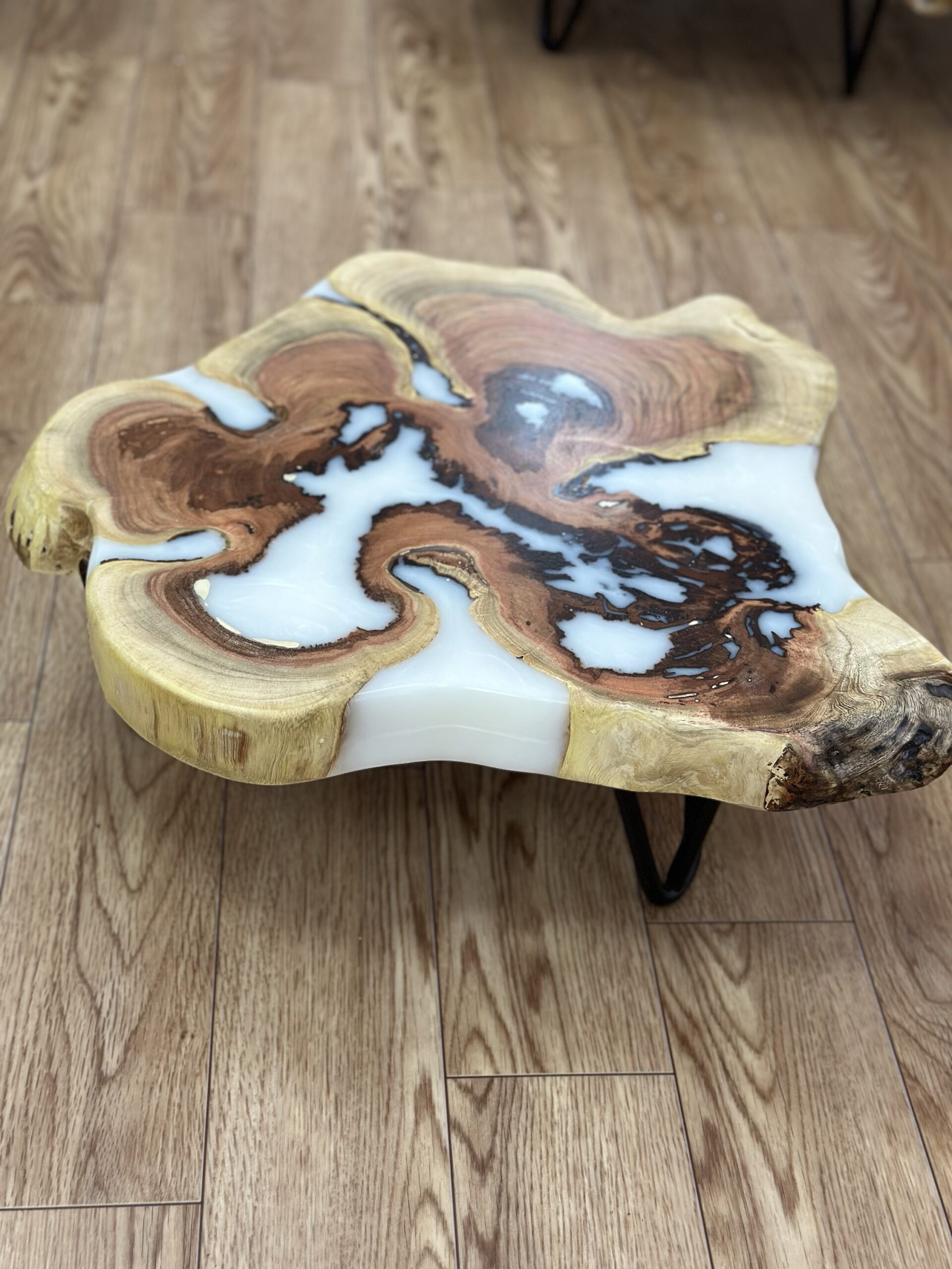 שולחן לחדר מזרחי עץ חרוב עם שילוב אפוקסי בצבע לבן