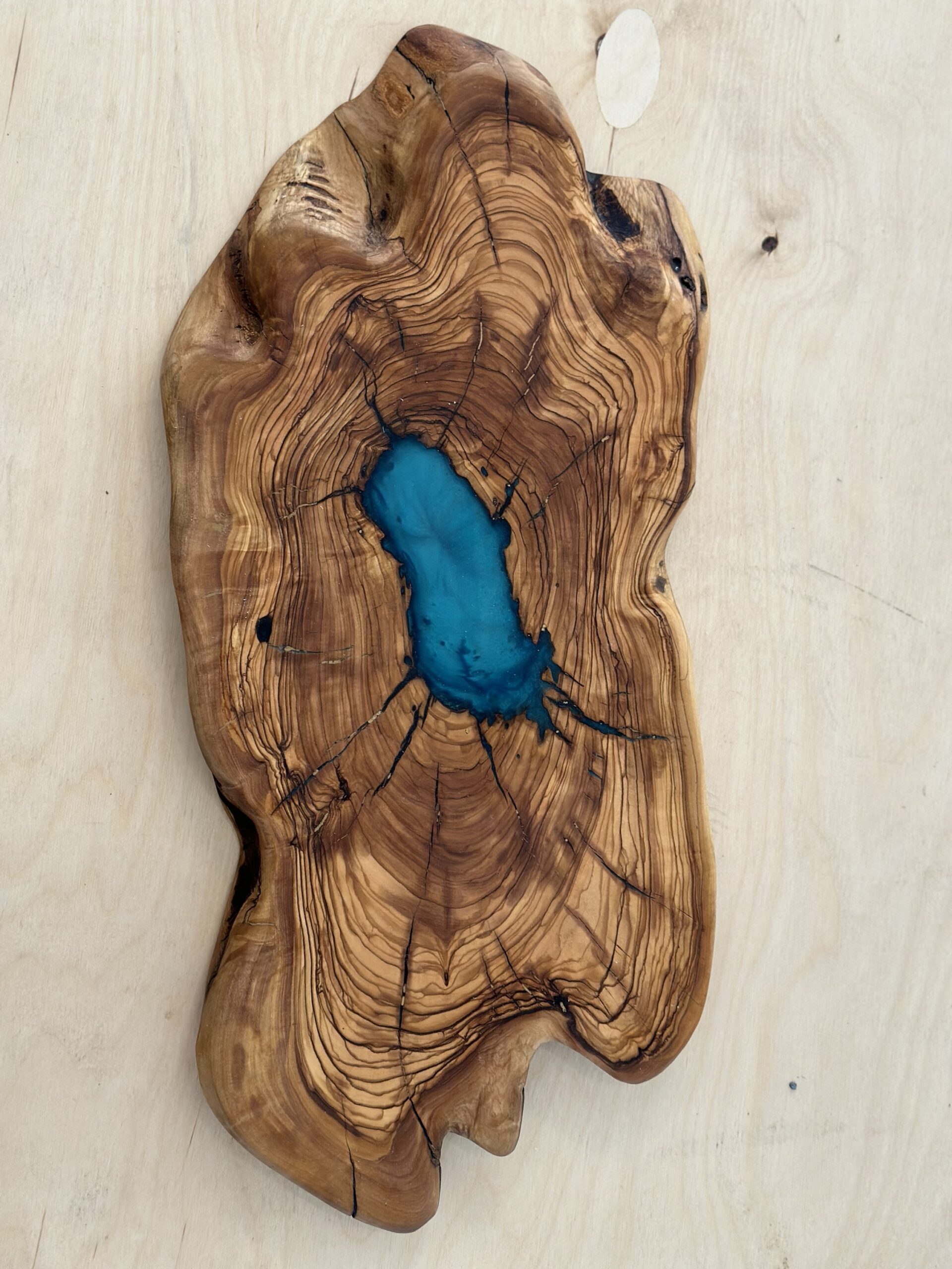 בוצ'ר עץ זית עם אפוקסי 43*50ס"מ