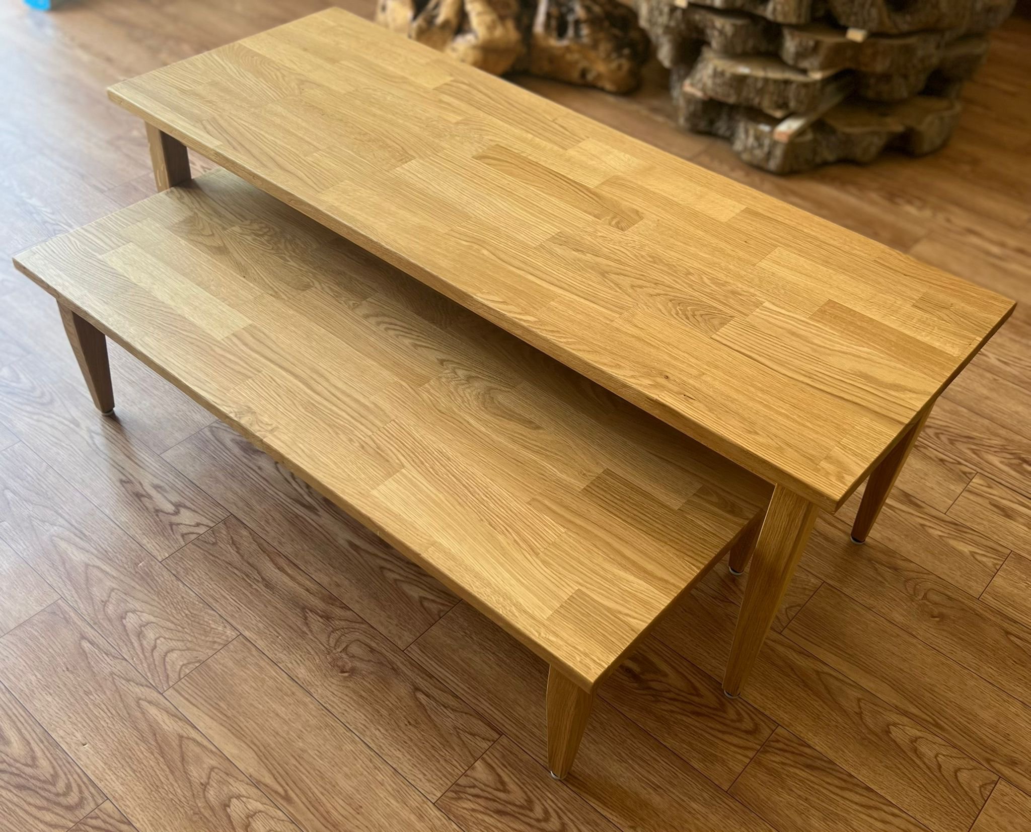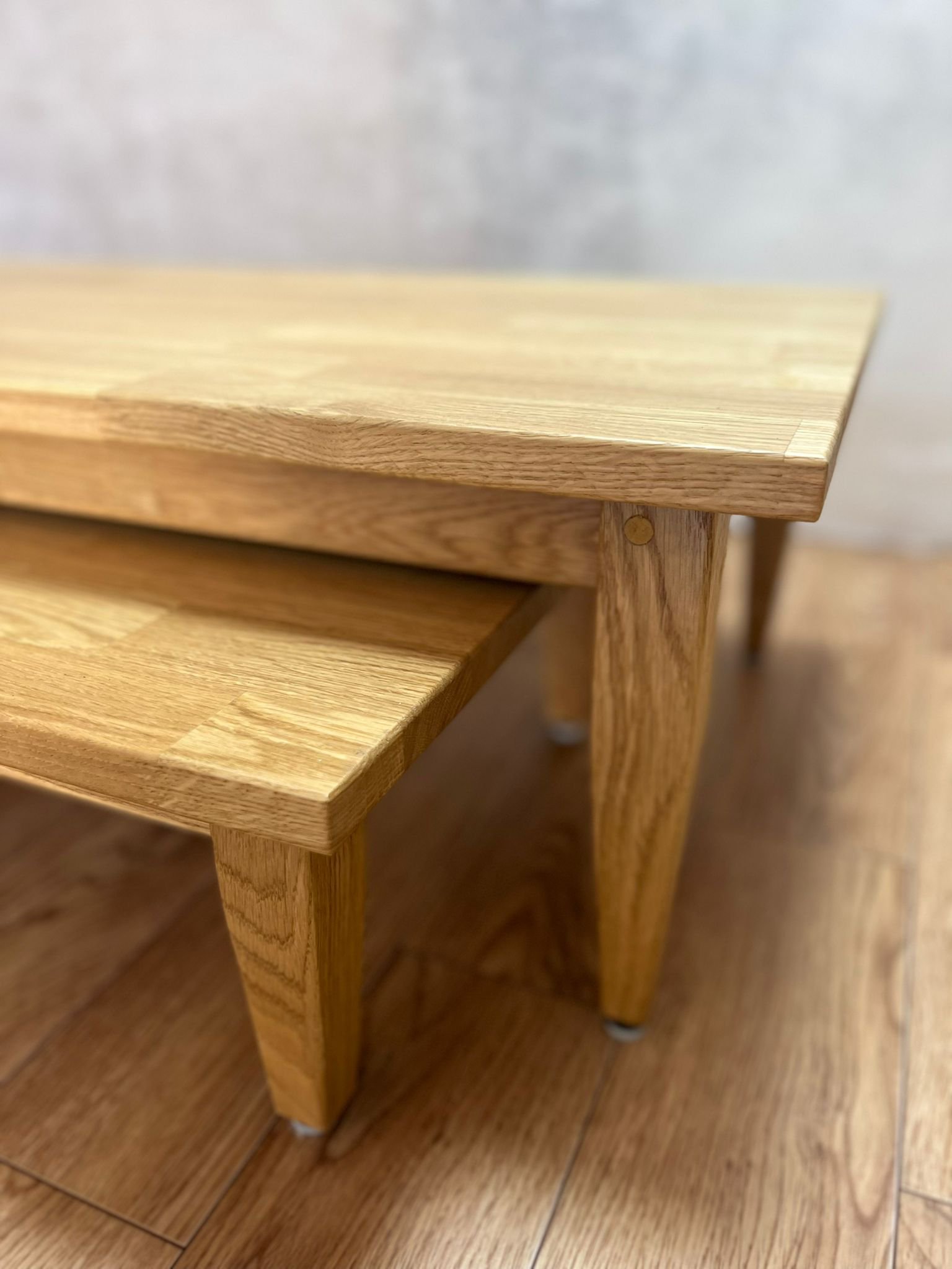 סט שולחנות לחדר מזרחי עץ מלא אלון מבוקע עדין רוחב 44 ס"מ/אורך 116ס"מ/גובה 42 ס"מ רוחב 50ס"מ/אורך 99 ס"מ/גובה 28 ס"מ