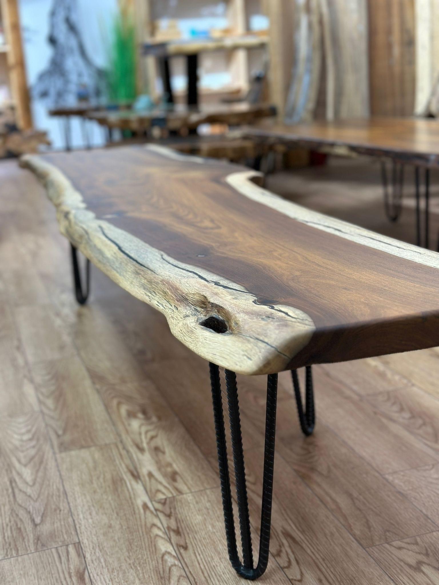 שולחן סלון ענק מיוחד עץ סיסם עם שילוב אפוקסי שחור שקוף רוחב 62 ס"מ/אורך 245 ס"מ/גובה 46 ס"מ/עובי 5ס"מ