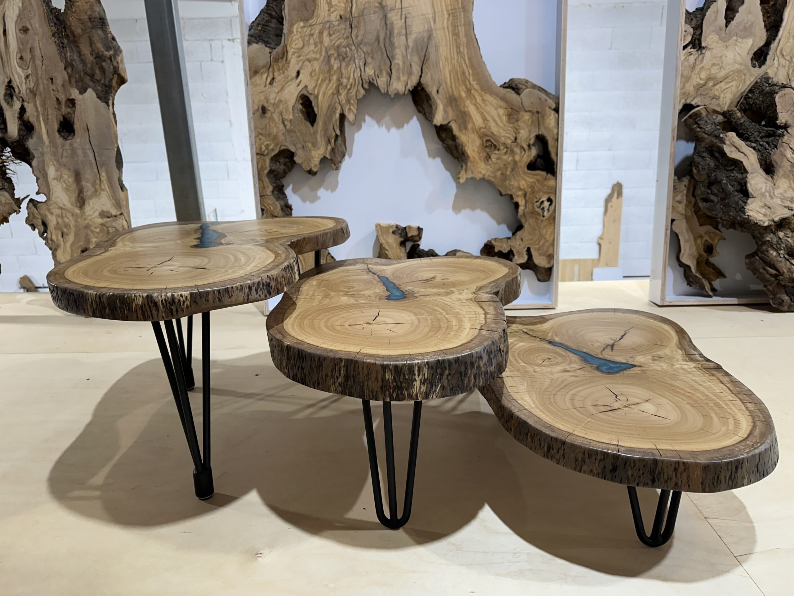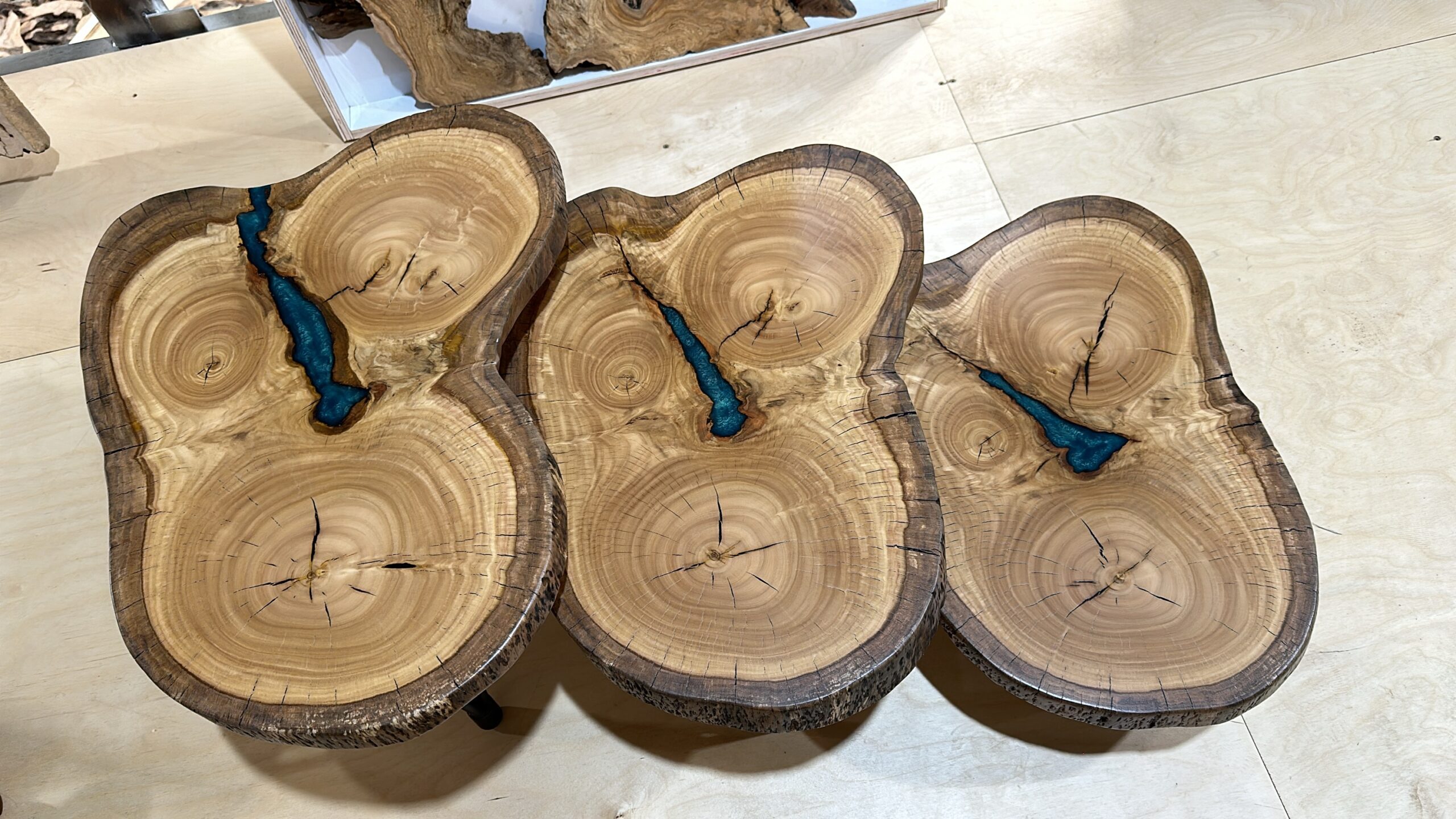 שולחן חדר מזרחי מעץ סיסם הודי עם שילוב אפוקסי