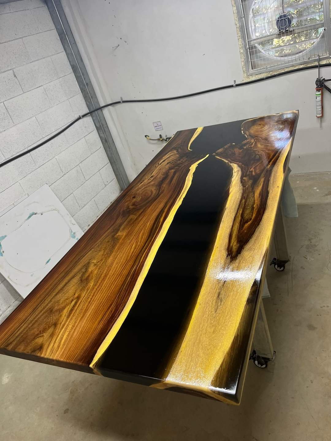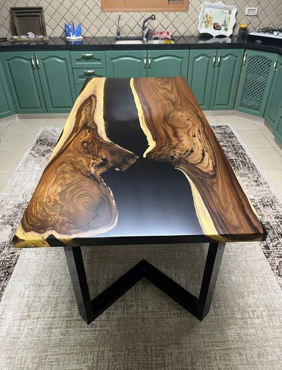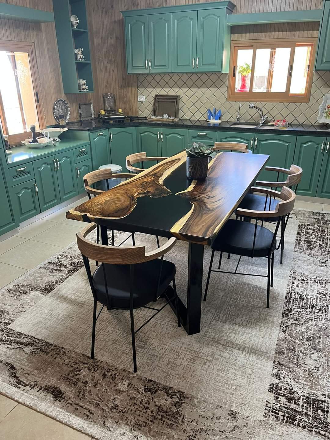 שולחן אוכל מעץ סיסם הודי עם שילוב אפוקסי צבע שחור