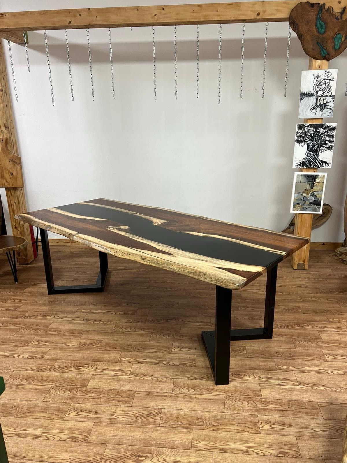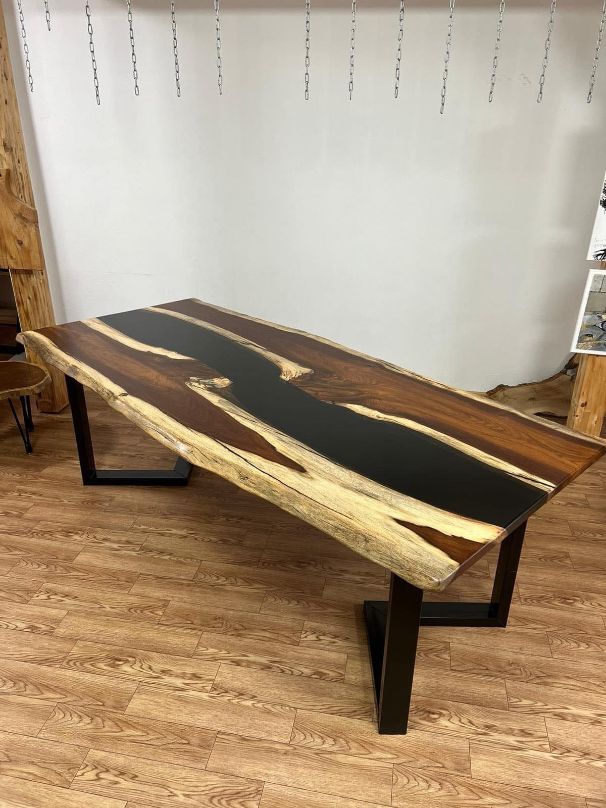 שולחן אוכל מעץ סיסם הודי עם שילוב אפוקסי צבע שחור