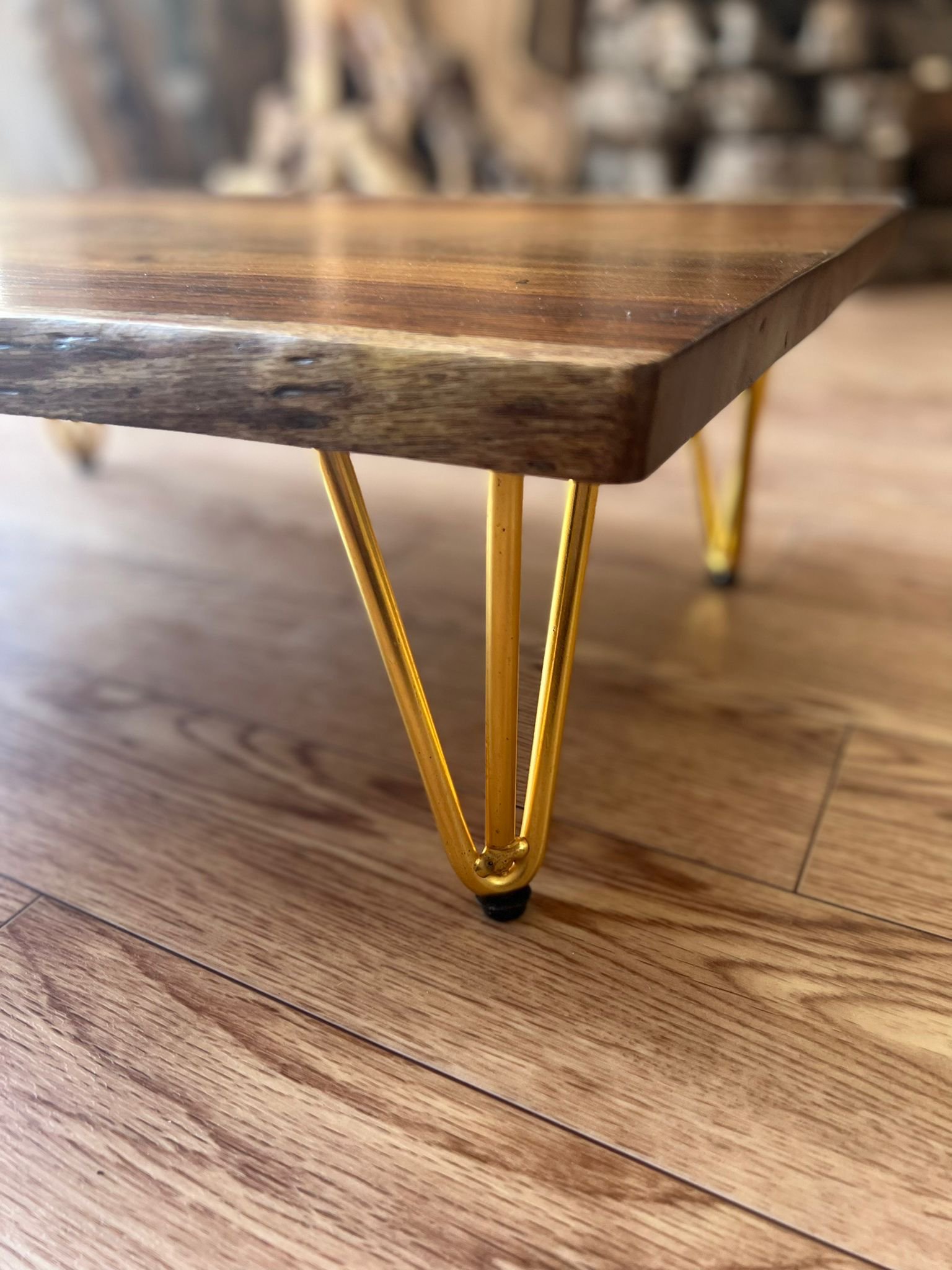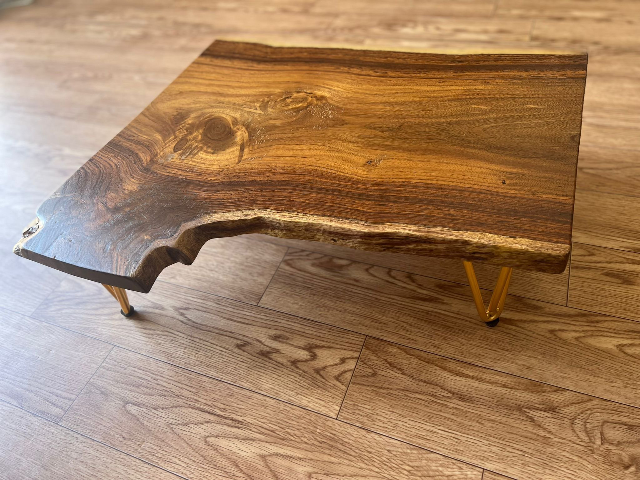 שולחן סלון עץ סיסם עם שילוב אפוקסי שחור שקוף רוחב 50ס"מ/אורך 130ס"מ/גובה 41 ס"מ/עובי 5ס"מ