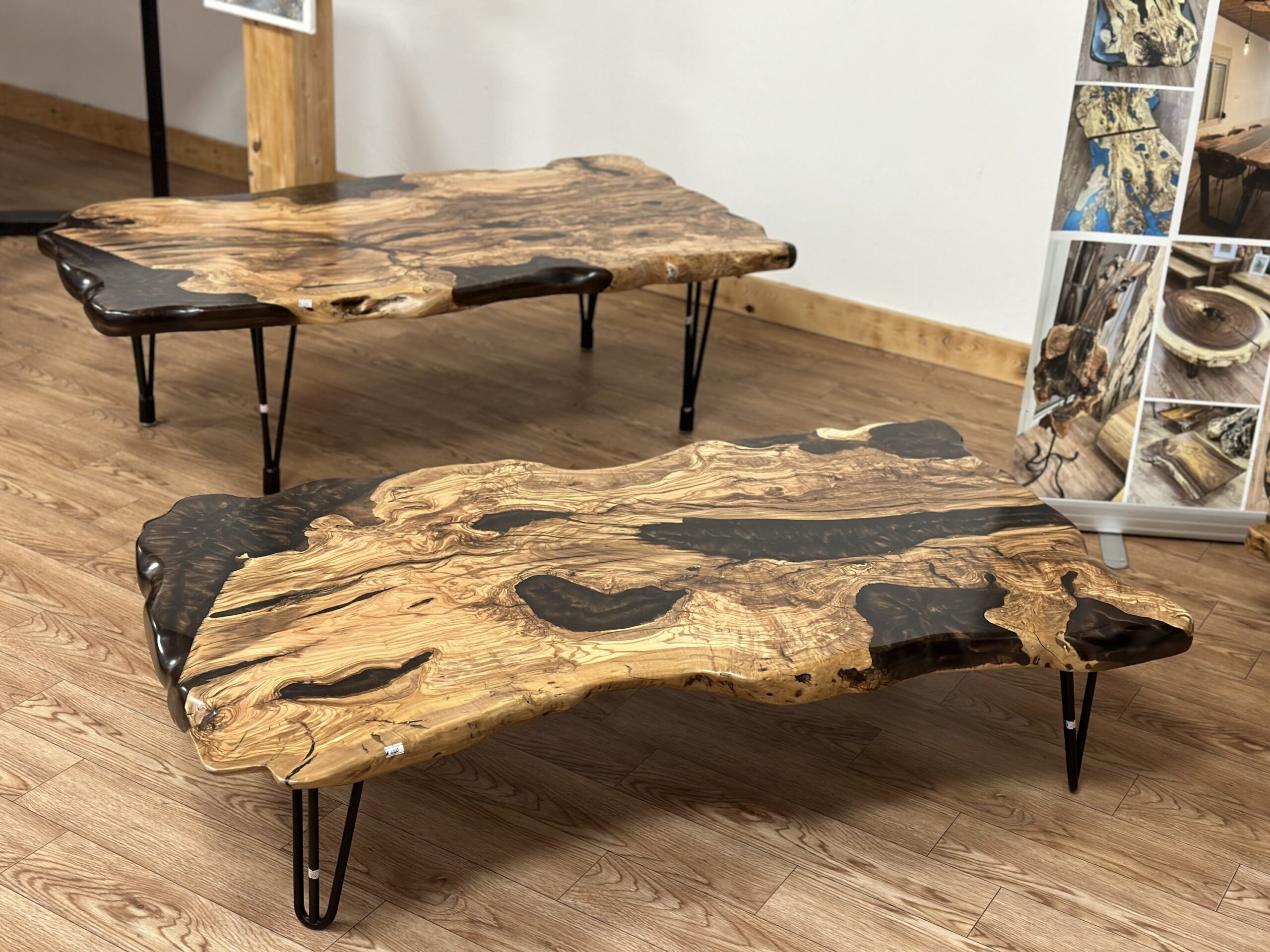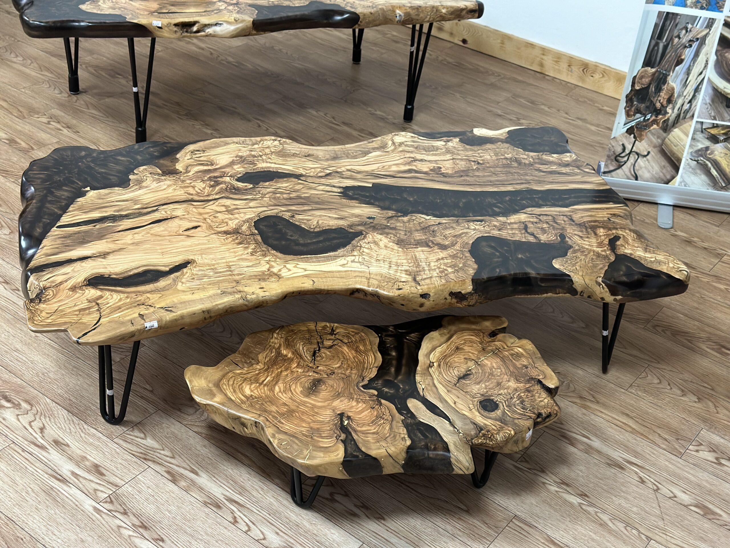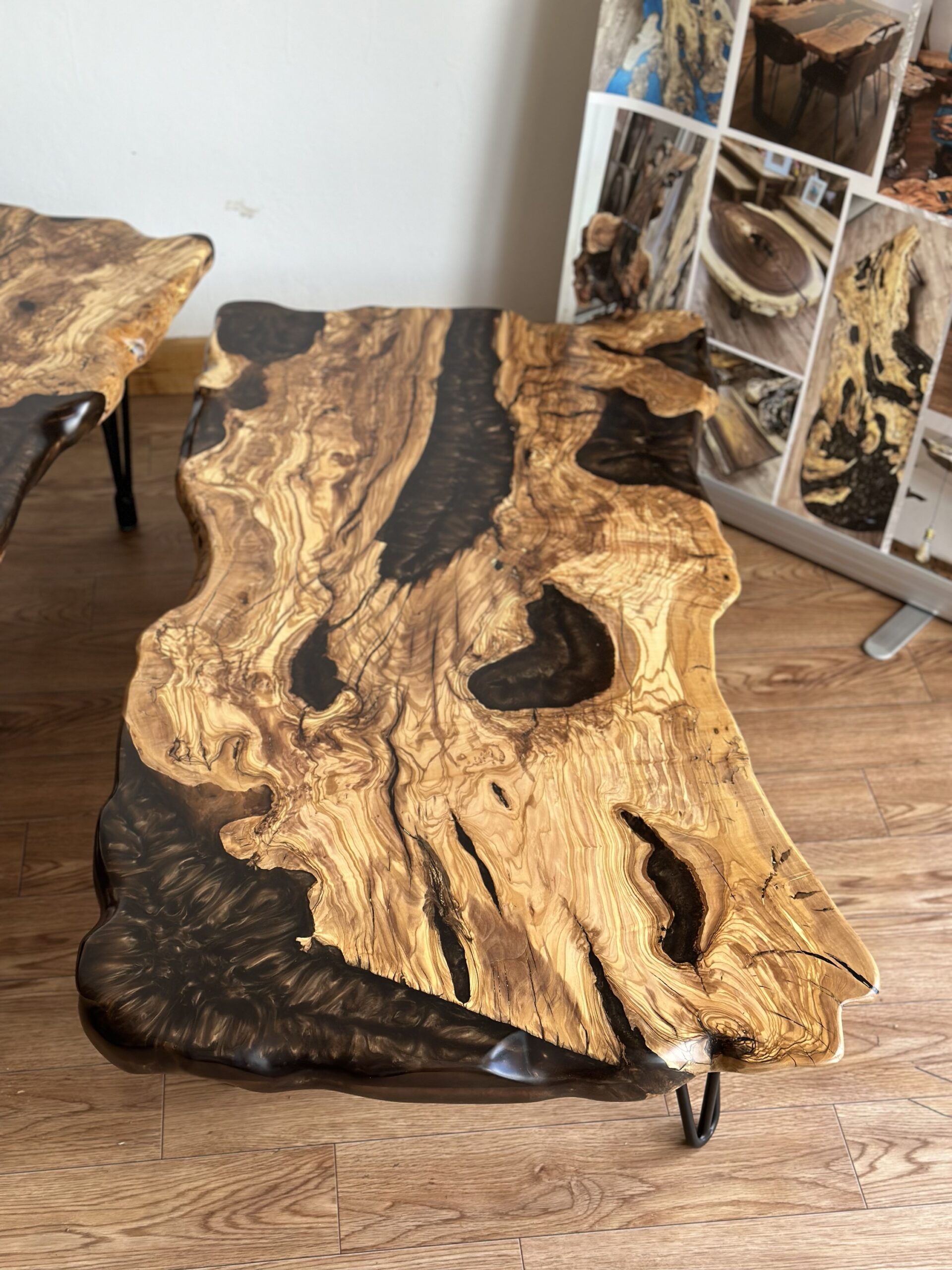שולחן לחדר מזרחי מעץ זית בשילוב אפוקסי צבע חום