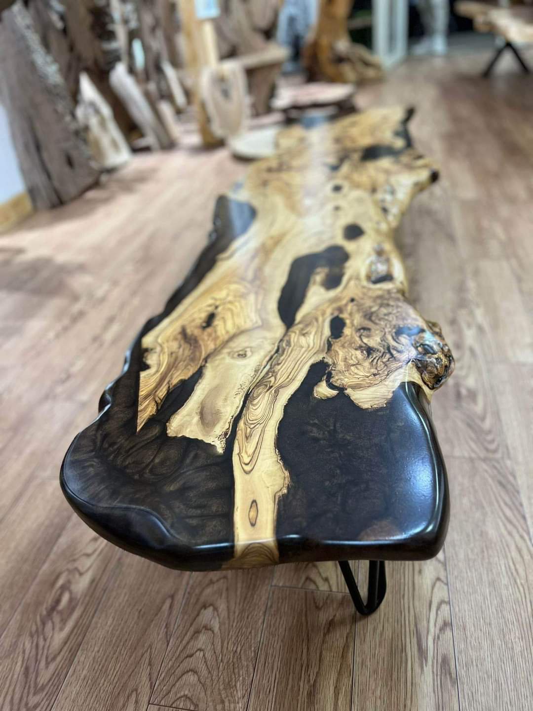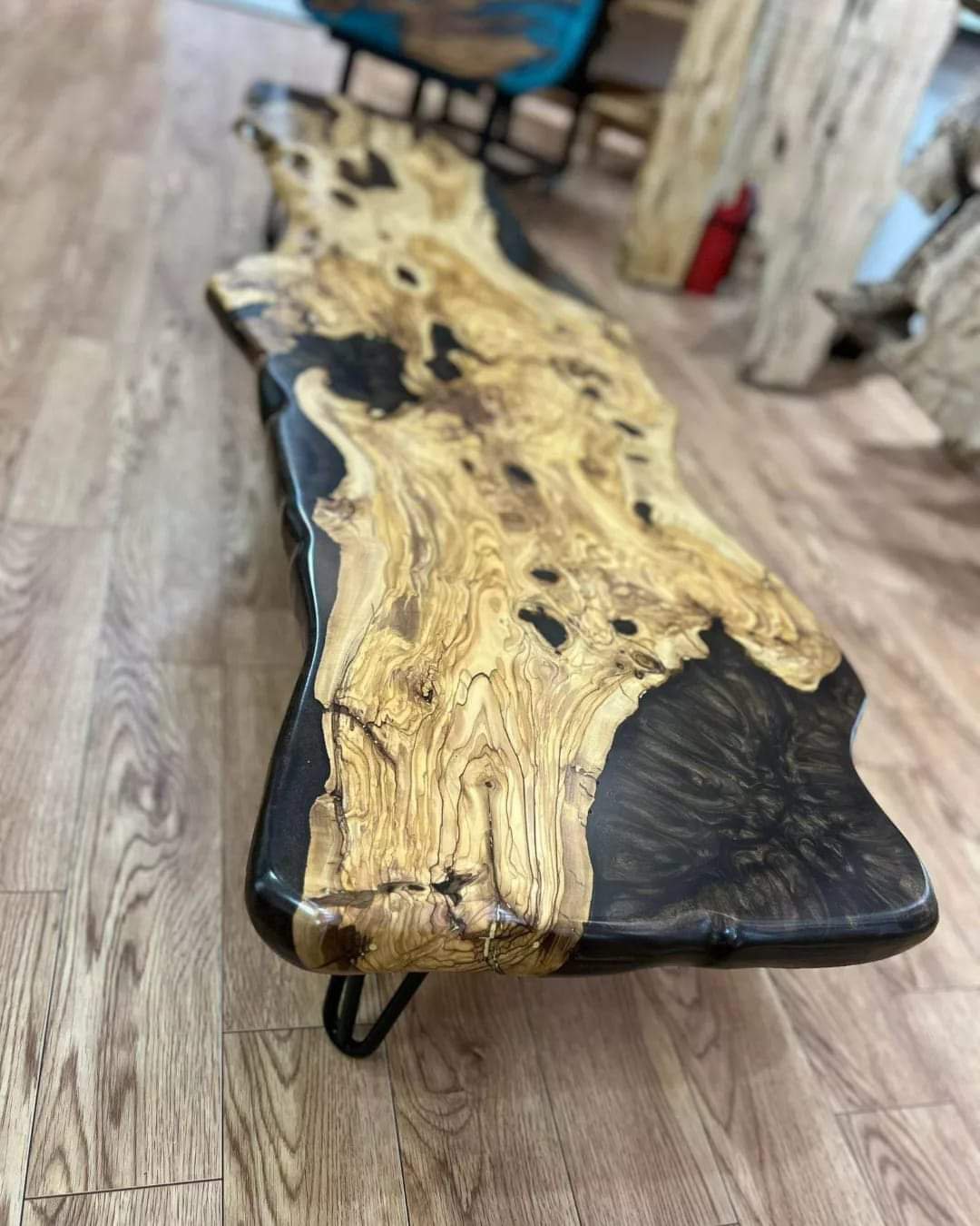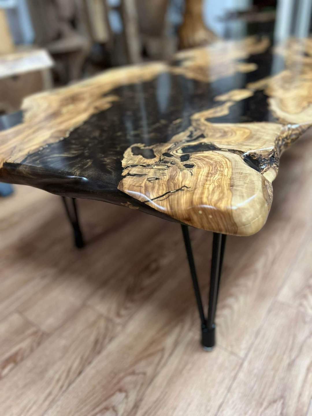 שולחן סלון עץ זית עם אפוקסי צבע חום