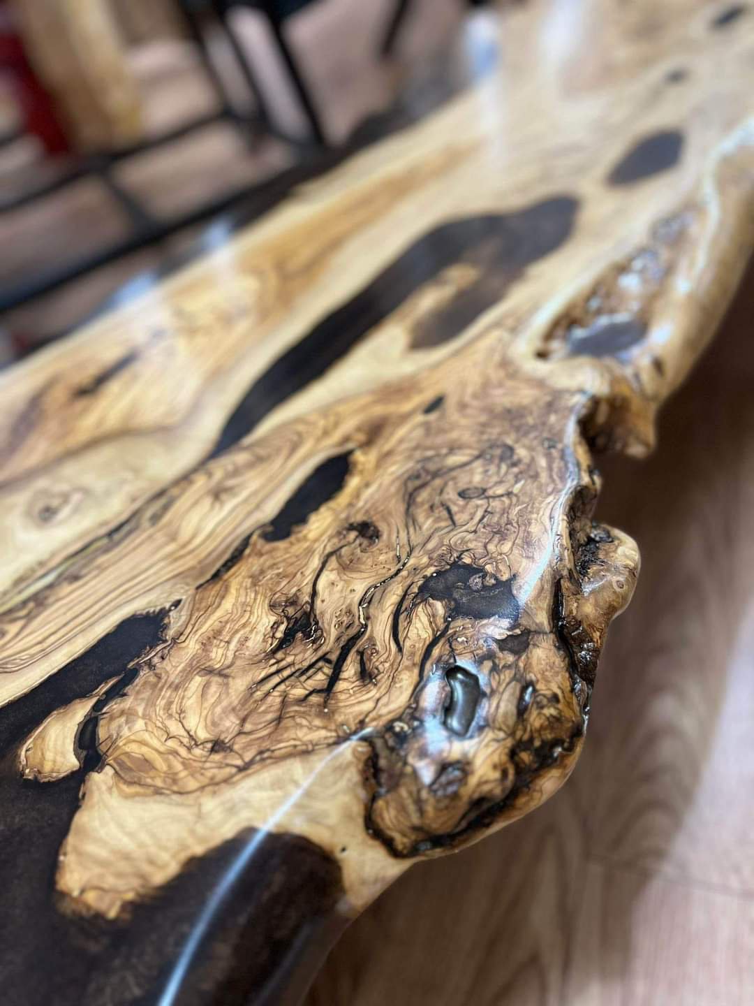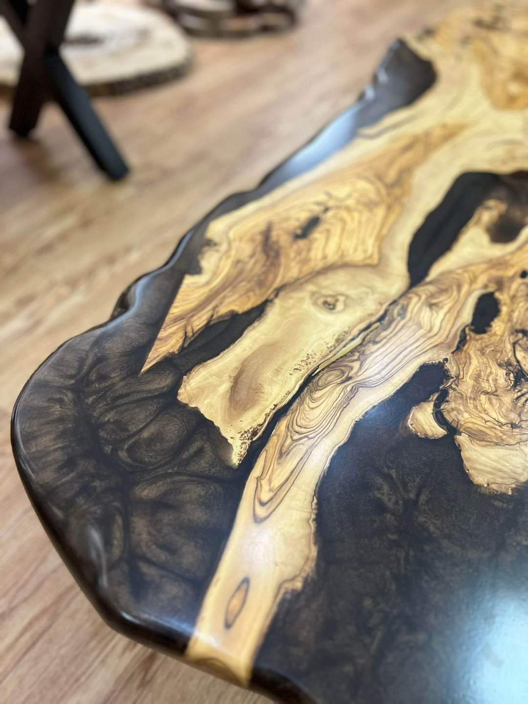 שולחן חדר מזרחי מעץ זית עם שילוב אפוקסי