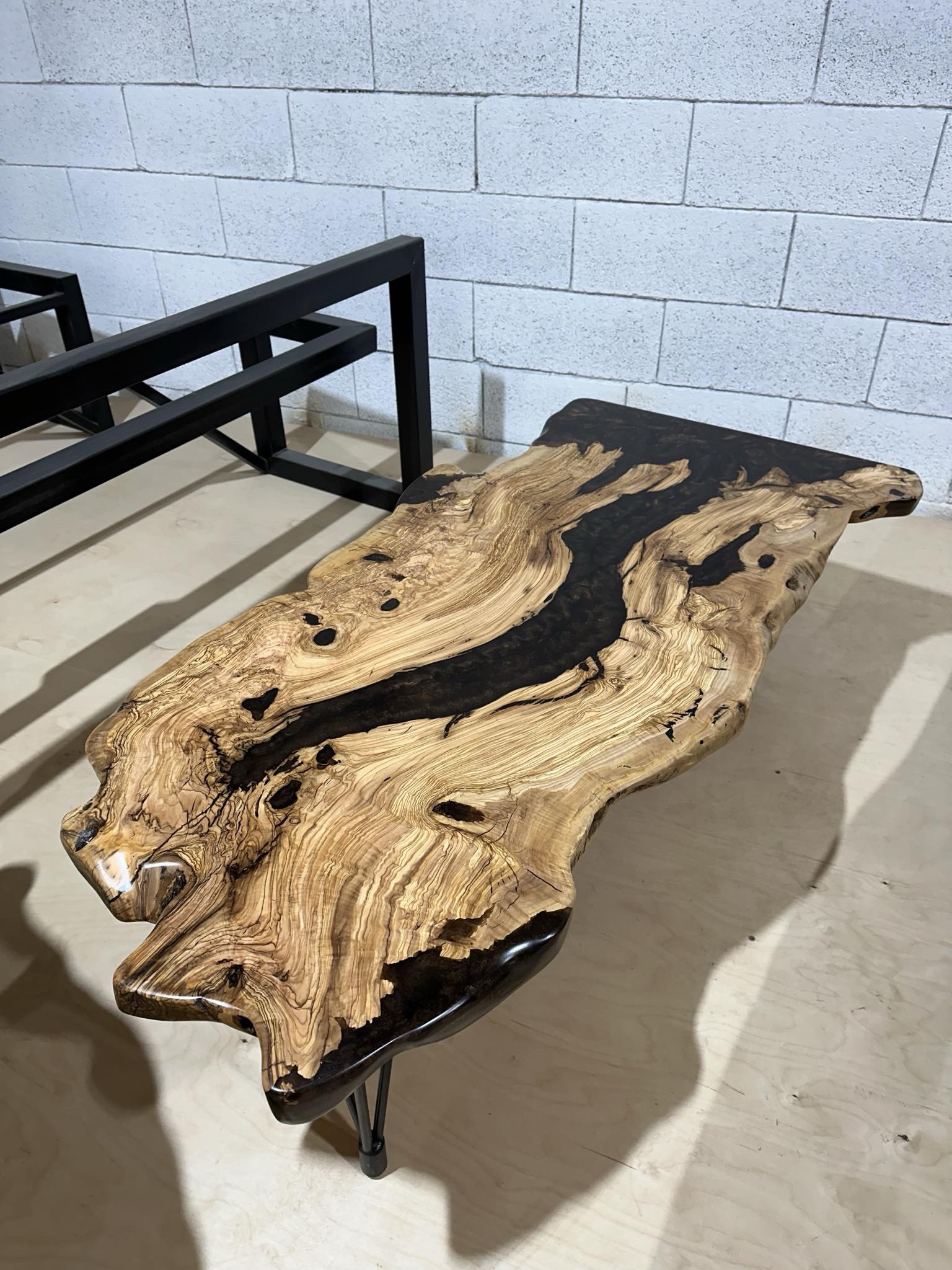 שולחן סלון מעץ זית בשילוב אפוקסי צבע חום