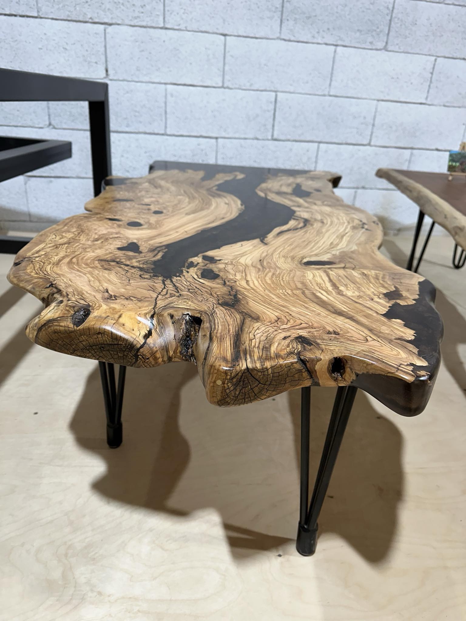 כמות של שולחן סלון מעץ זית בשילוב אפוקסי צבע חום