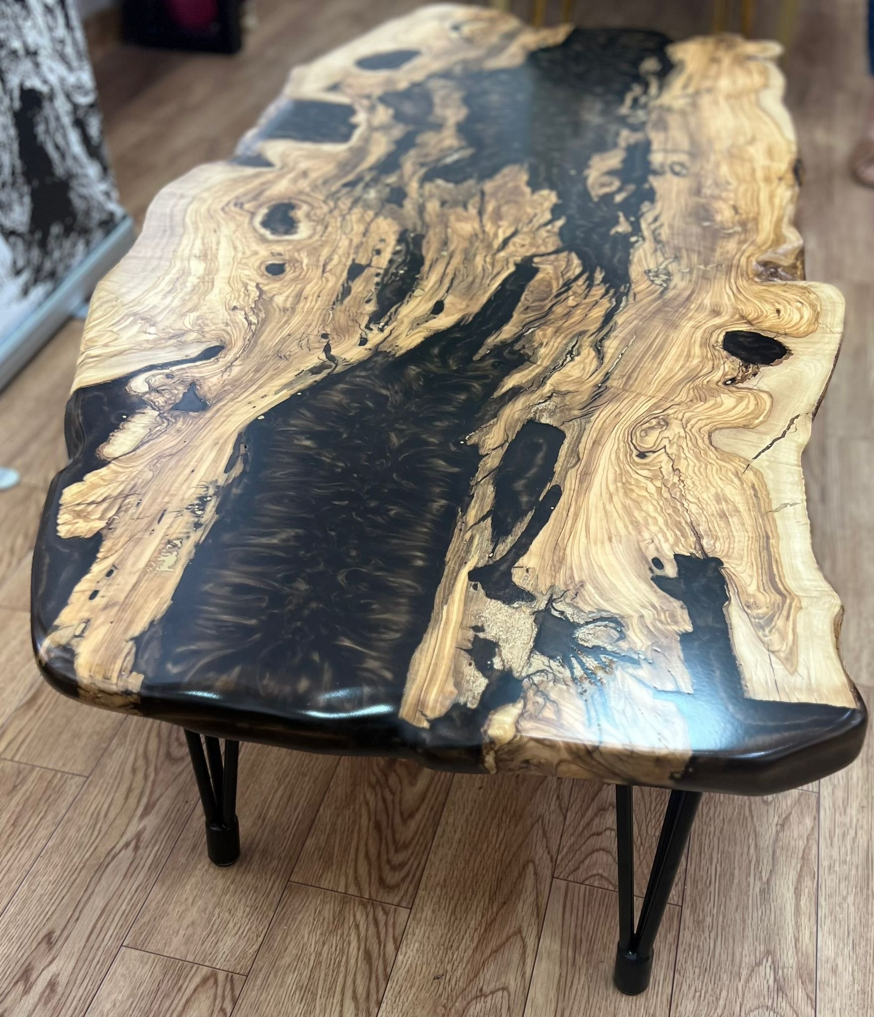 שולחן לחדר מזרחי מעץ זית עם שילוב אפוקסי