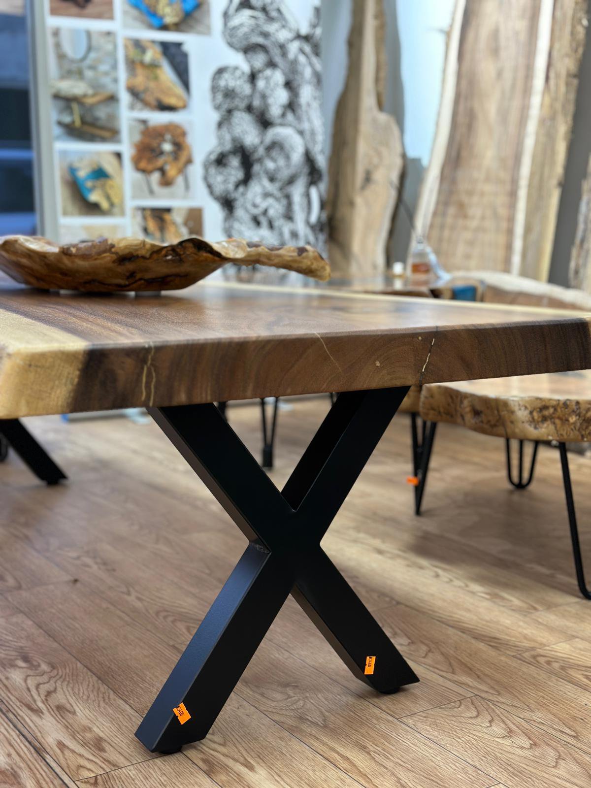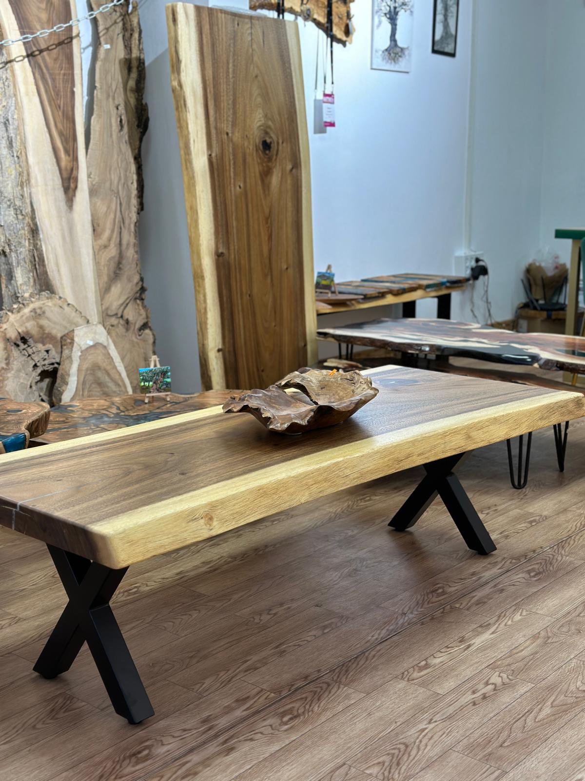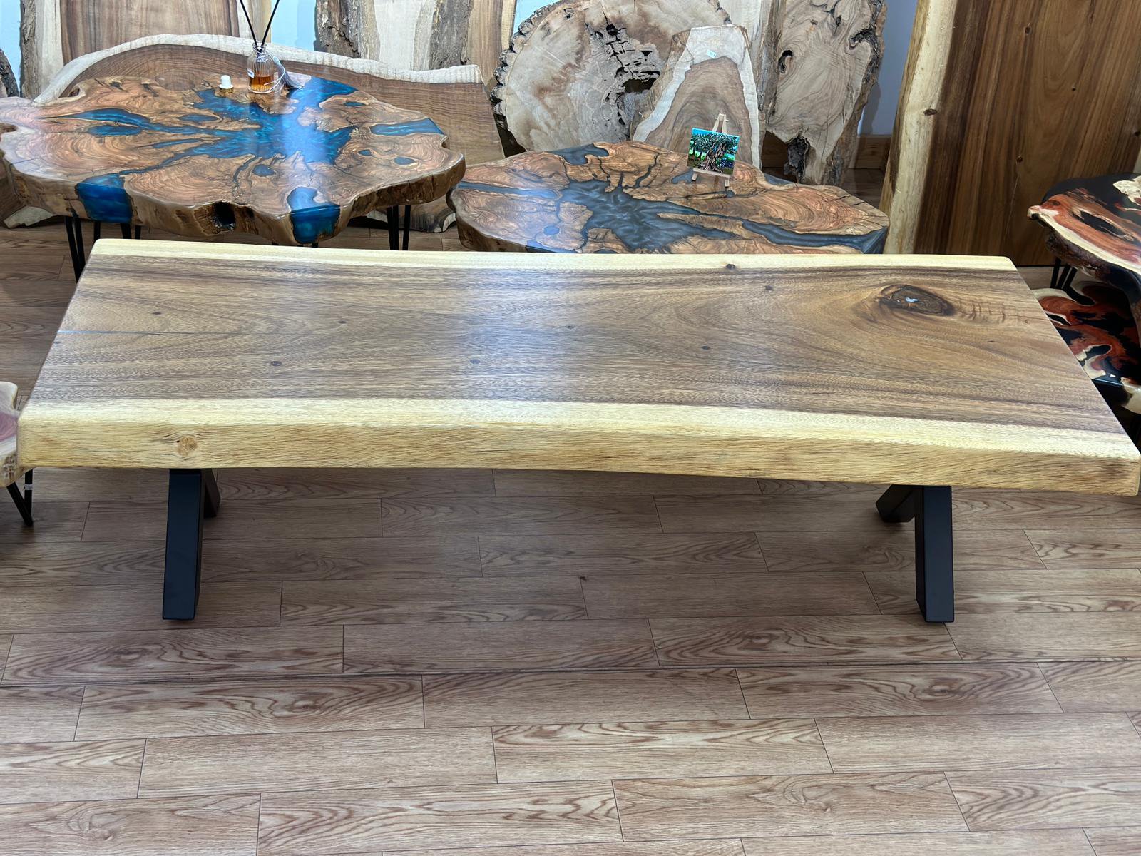 שולחן סלון עץ סיסם עם שילוב אפוקסי שחור שקוף רוחב 50ס"מ/אורך 130ס"מ/גובה 41 ס"מ/עובי 5ס"מ
