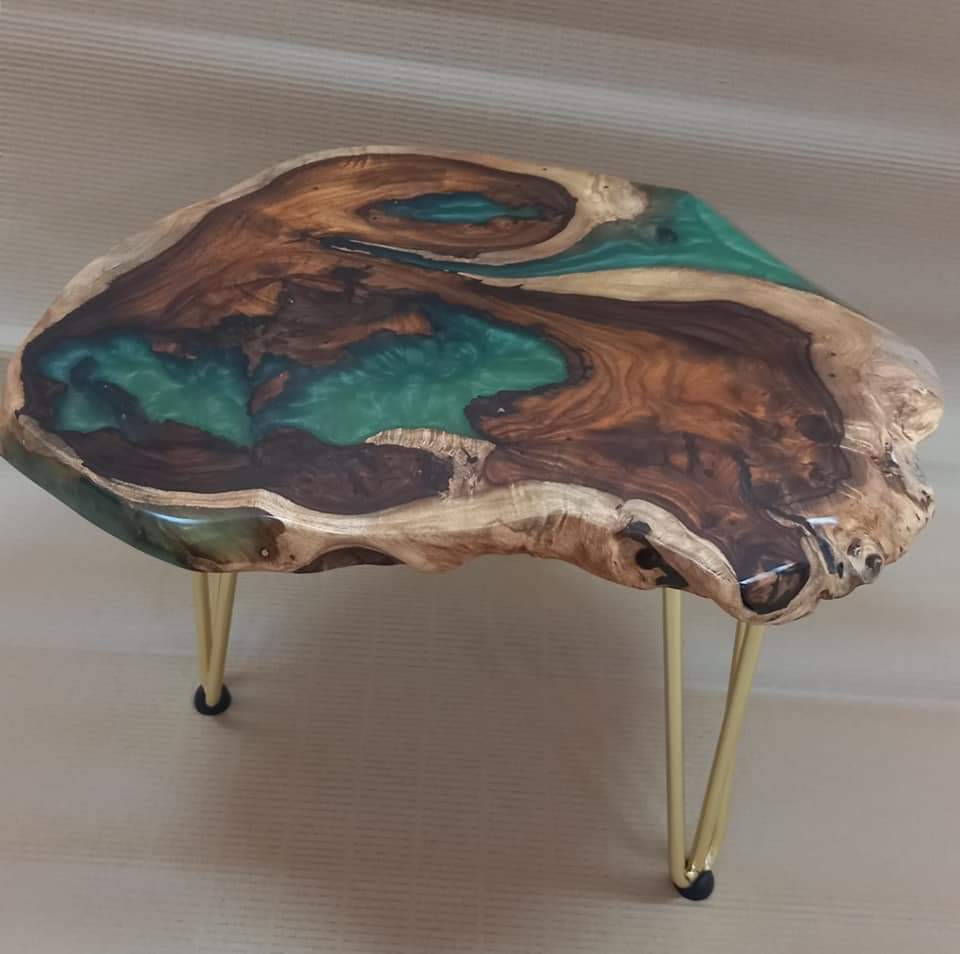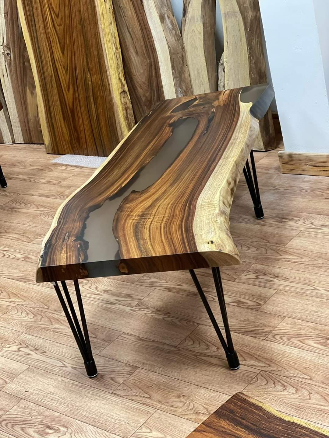 שולחן סלון מעץ סיסם הודי עם שילוב אפוקסי