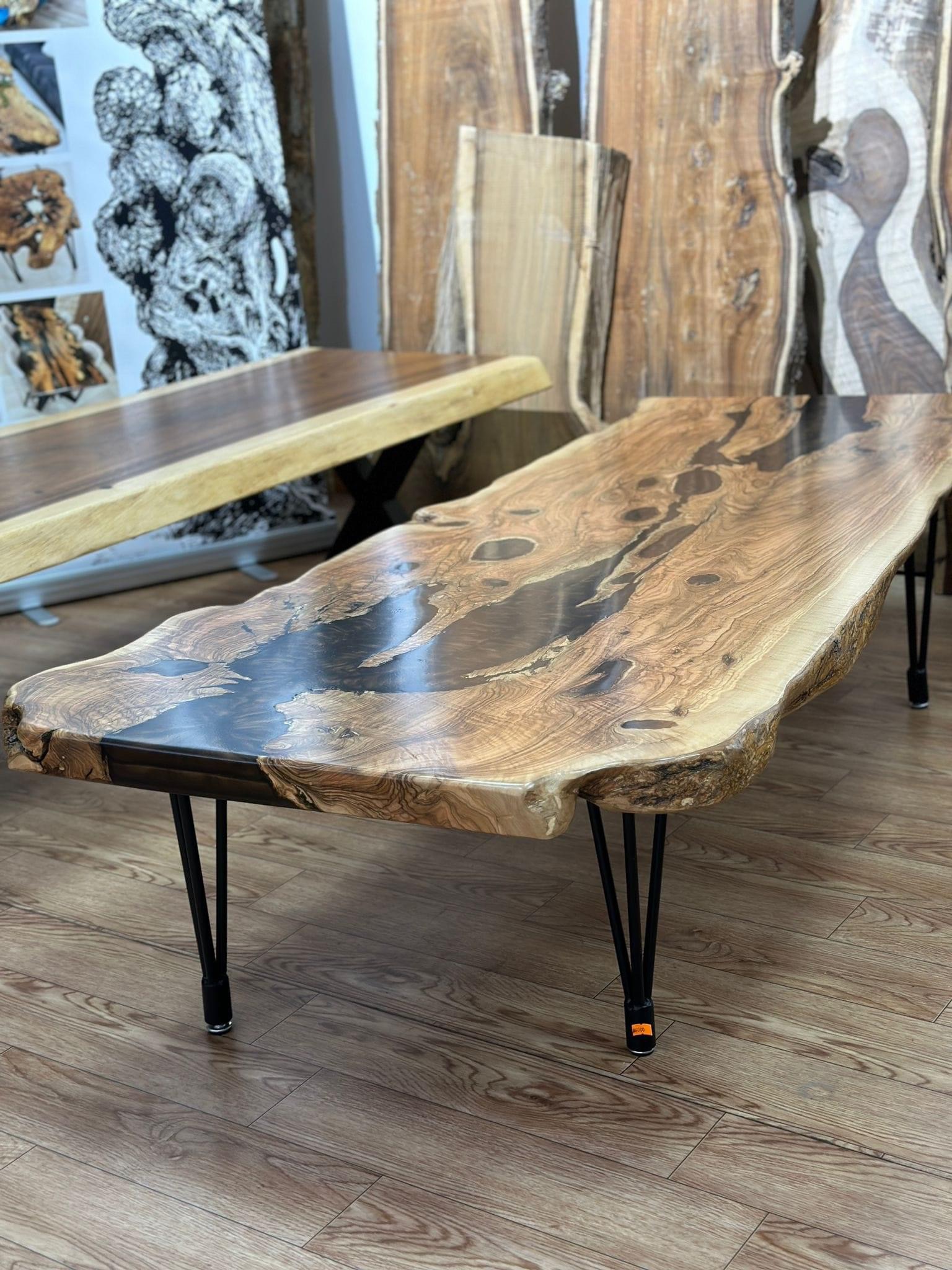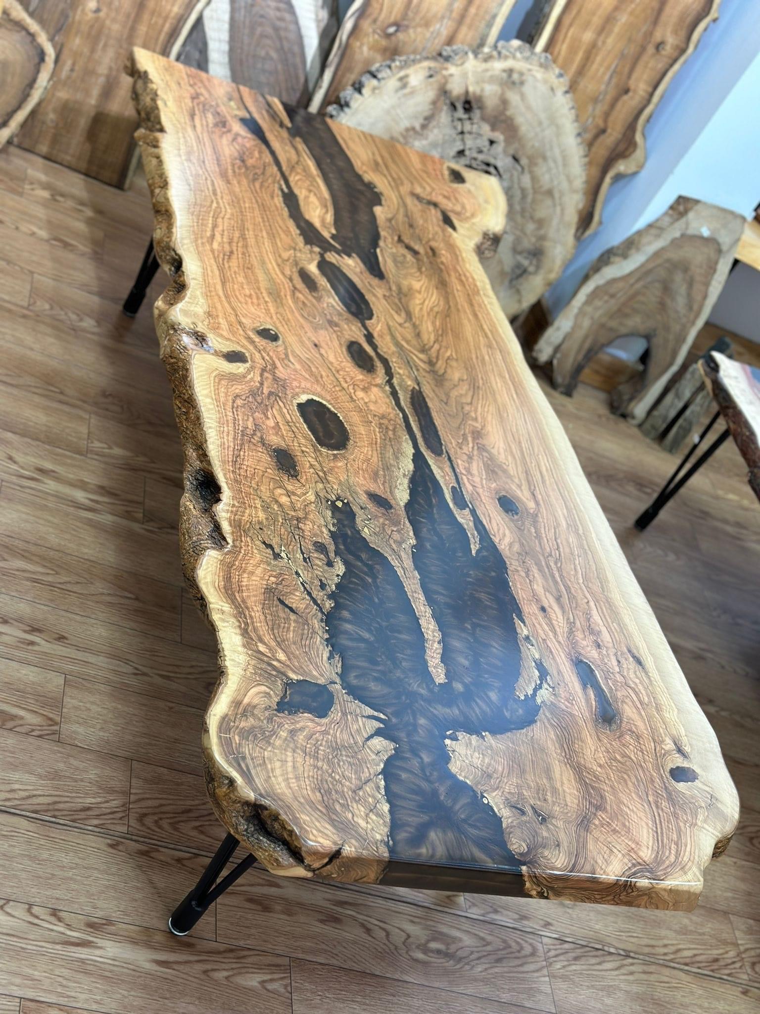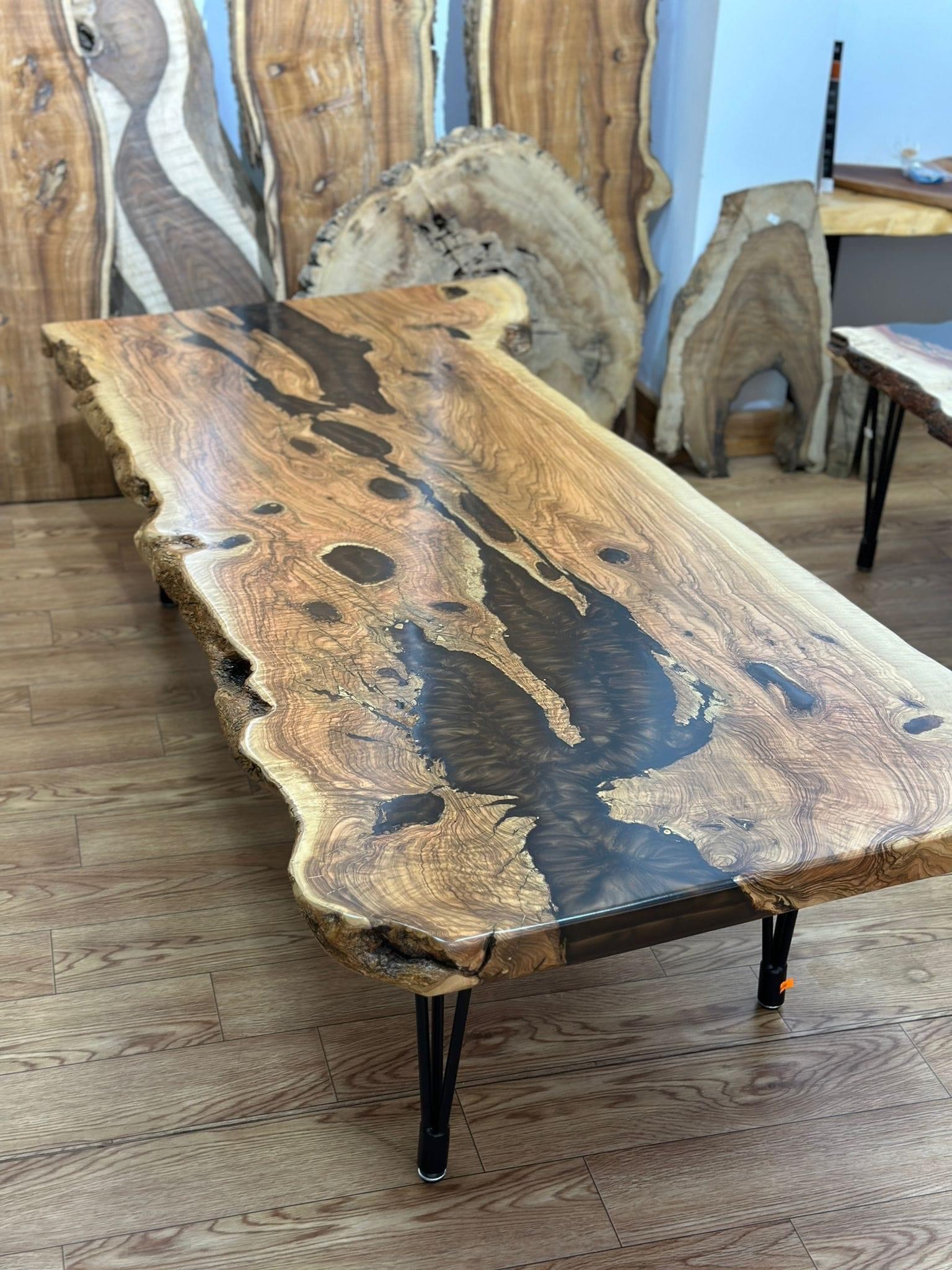 שולחן סלון מעץ זית עם שילוב אפוקסי