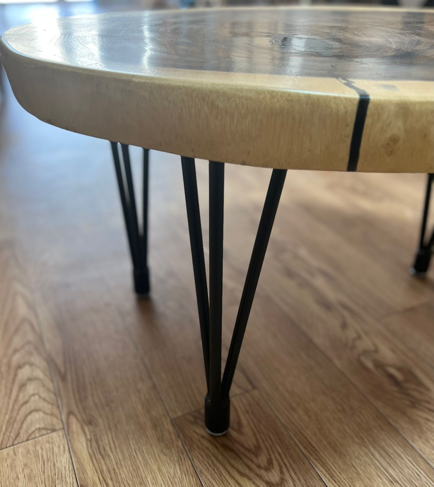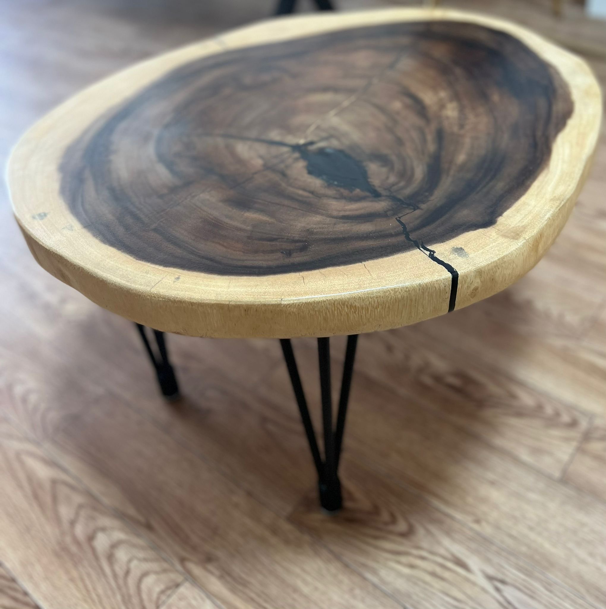 שולחן סלון ענק מיוחד עץ סיסם עם שילוב אפוקסי שחור שקוף רוחב 62 ס"מ/אורך 245 ס"מ/גובה 46 ס"מ/עובי 5ס"מ