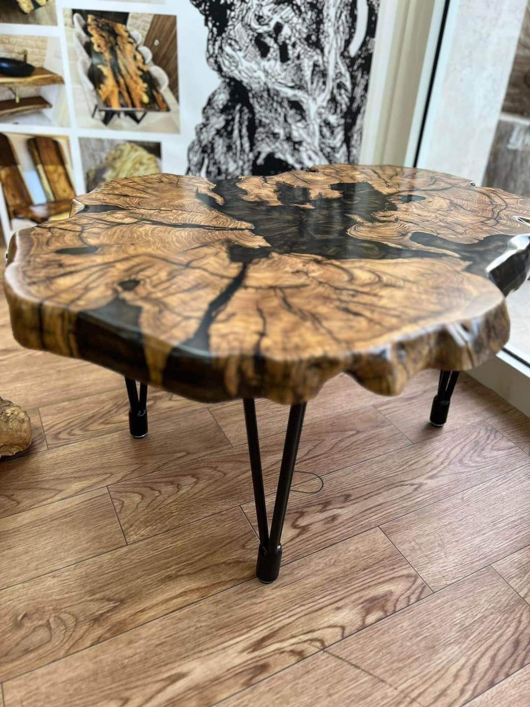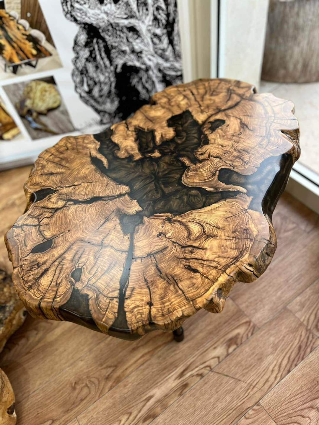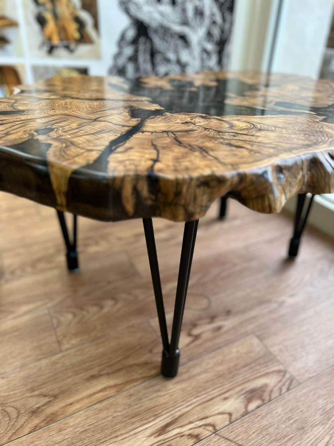 שולחן קפה עץ זית עם שילוב אפוקסי בצבע חום