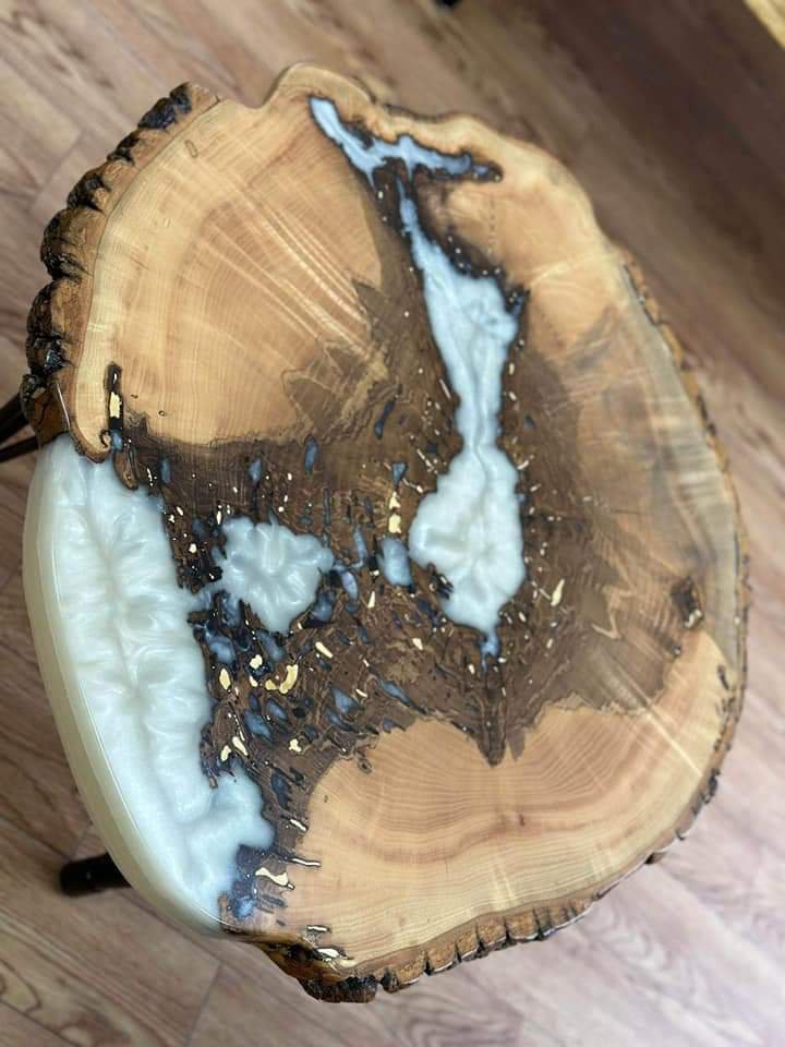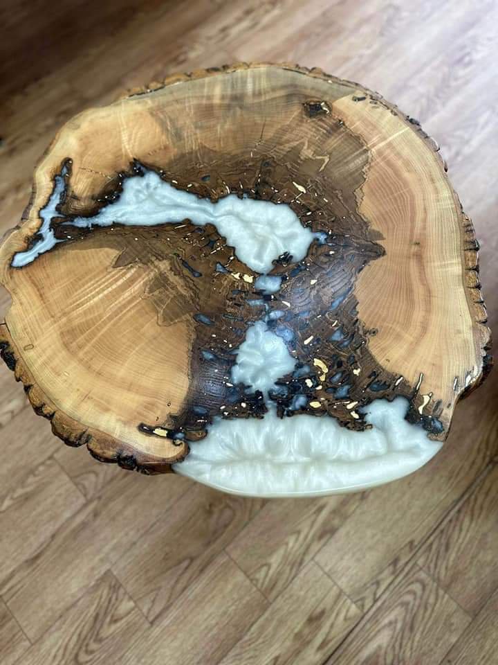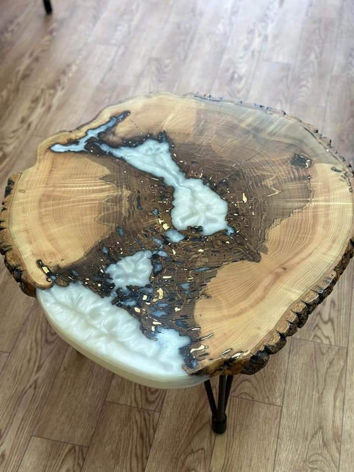 שולחן קפה אלון שעם עם שילוב אפוקסי צבע לבן